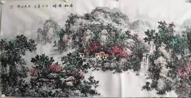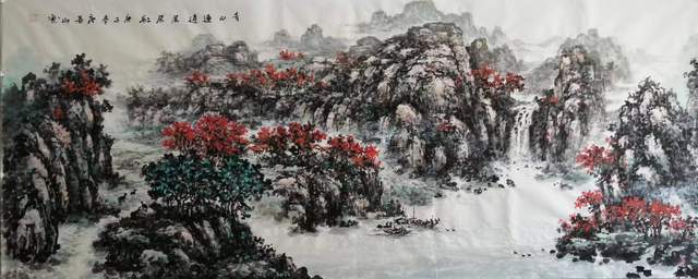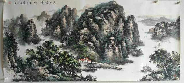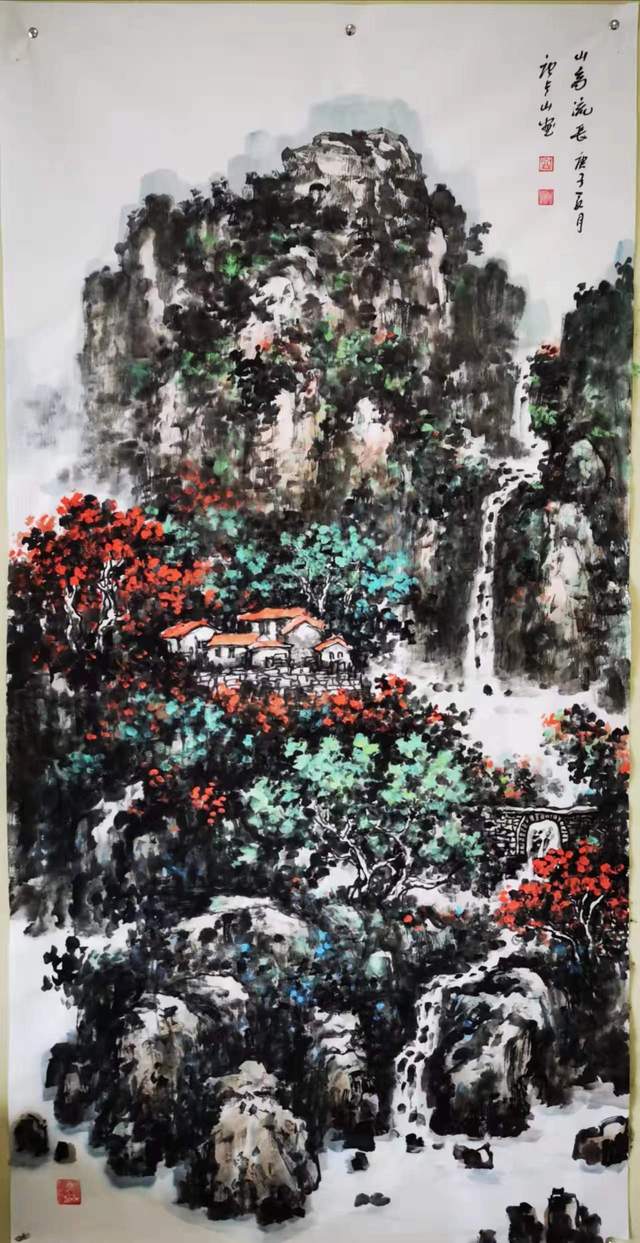 此时的唐长山,正在工作室里创作新作品,他取青绿、水墨、浅绛三者精华,又合理运用西洋画光影透视和油画层积厚染的技巧。在酣畅淋漓的笔墨中,在率意挥写的氛围下,将通过写生而感悟出的理想道德、人生价值以及对自然界的敬畏之情,充分融入到作品之中。