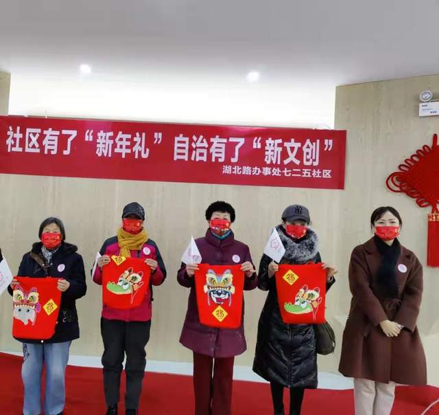 此次活动湖北路办事处搭台,社区通过与河南科技大学艺术与设计学院进行合作,创作出带有社区文化符号的文创设计和产品,产品设计以围绕虎年主题,对社区新年文化进行创意,设计制作了帆布袋、春联、口罩等一系列新年文化周边产品,打包成“福袋”,用以表彰在2021年参与社区建设的志愿者和自治团体以及共建党组织。