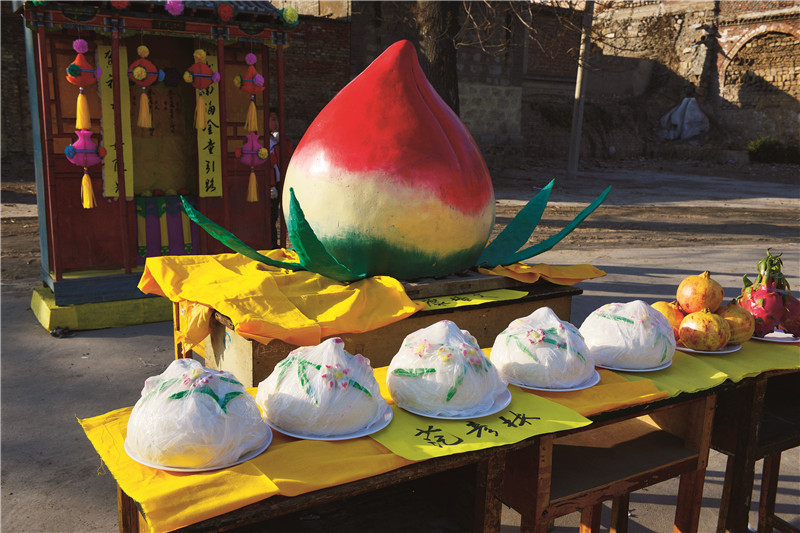 郝雨庭说:“以前捏的是各种各样的面花,解放后,就开始了捏花卉、植物、动物、北瓜、西红柿、苹果、桃、梨等瓜果蔬菜。”近年来,郝雨庭捏制的面塑作品有了大变化,利用铁丝、木棍做支架制作大型面塑作品,如彩色的凤凰等吉祥面塑作品。郝雨庭老人的面塑手工技艺提升了南张村的知名度,如今井陉各村的庙会都少不了南张村的面塑作品。(编辑靳彤)