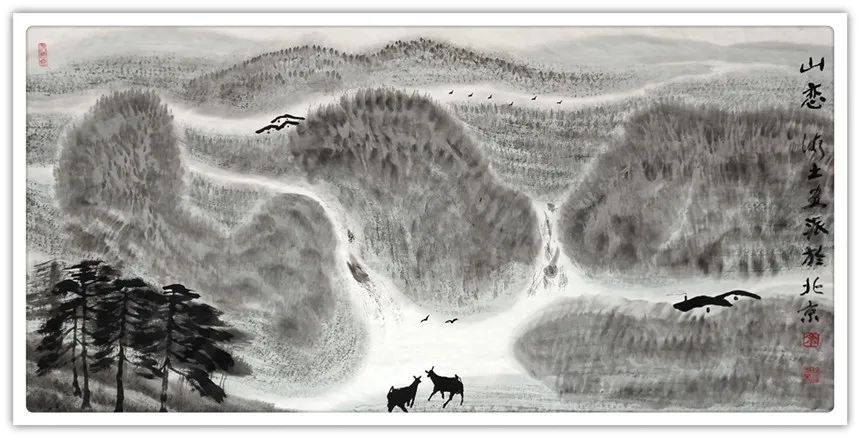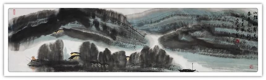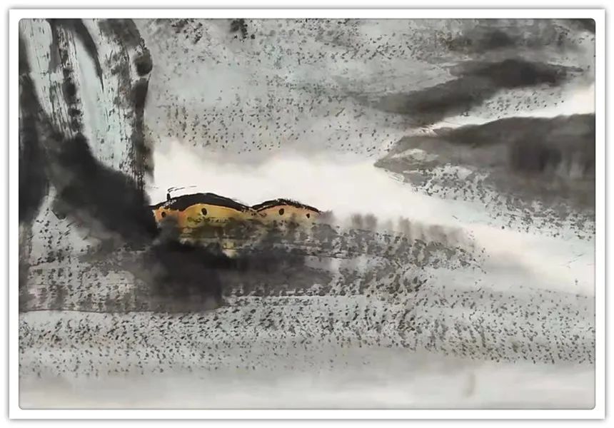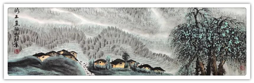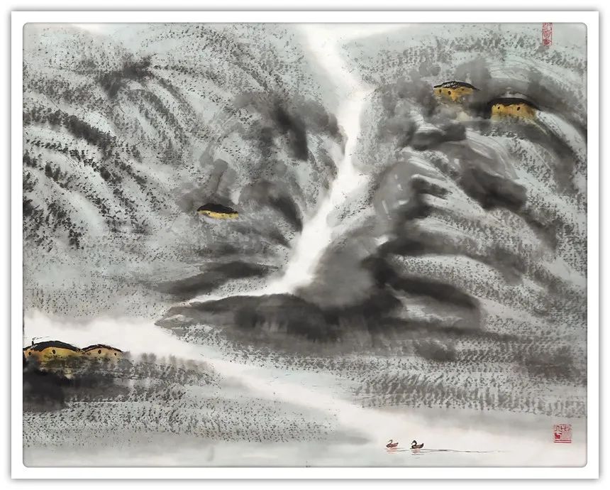 在创作上,先生并没有只局限于古法上面,而是融入了更多的湖南湘土风情,汲取了更多的乡情文化,在技法上,他注重于虚实结构的对比,同时也巧妙的把握住了墨色的渲染度!由此一来,山的雄浑磅礴与水的清澈无尘,即刻纵然于纸上!通幅用笔,不再是单纯的描绘和模仿对象,转而是努力的取捕获所绘物象的神韵感与结构感,笔致虚实相间,能在平和中浸出变化,使山体形成了一种极致清雅的视觉韵味与效果。在笔法上,余和平先生确实是达到了泼墨山水的最高境界,沉郁弥漫,清尘不染,松动自然,满纸云烟!