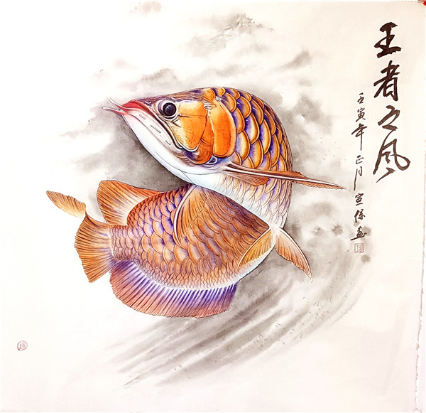 刘宣保,国家一级美术师,现居北京,职业书画家。其作品有三大特征:一是工兼写的结合,绘出了自然之美;二是融入了西方油画技术,展现了新的艺术之美;三是植根中国传统文化和美德,继承和弘扬了社会主义核心价值观,表现了时代精神。其将中国鱼文化和中国花鸟画文化进行融合,题材广泛、灵巧多变、情趣交融、雅俗共赏、独抒性灵、不拘格套,是具有特色的祖国优秀文化之一。尤其是其对鱼的描绘是从生活中汲取的,通过细致的观察和缜密的思索,从鱼的形态、结构和动态、与水的关系,直到鱼的习性、生活规律,无不细腻,无不丝丝入扣。在大量鱼的形象基础上加以笔墨的变化,并努力追求神韵的畅达,以此探索中国画的神形兼备,栩栩如生的意境,可谓是大音希声、大象无形。