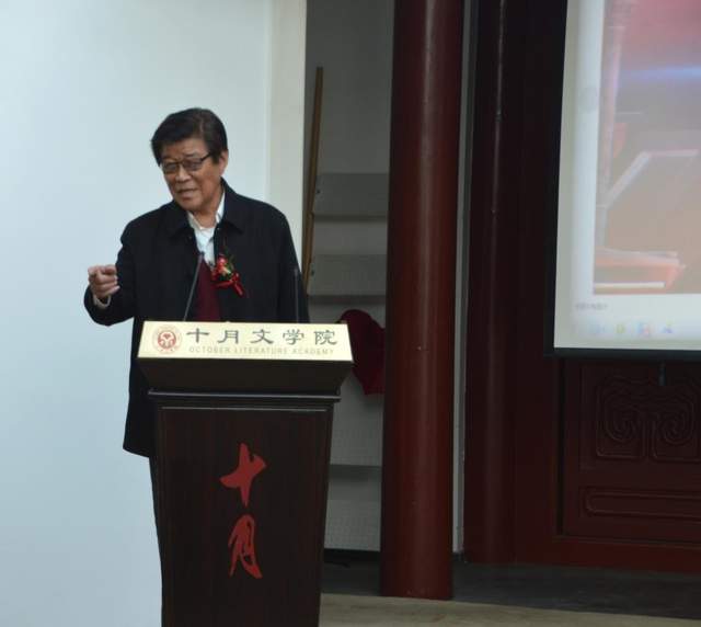 (上图)中国现代文学馆原副馆长、北京文德堂书画院院长刘泽林致辞。