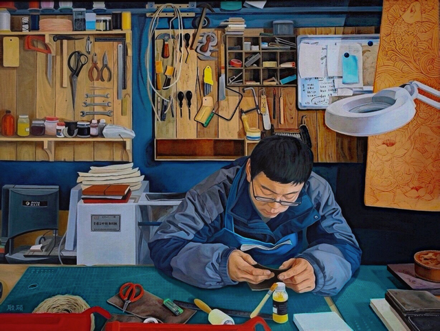 殷硕《工匠精神》油画