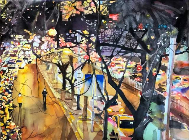 刘耀泽《夜》水彩
