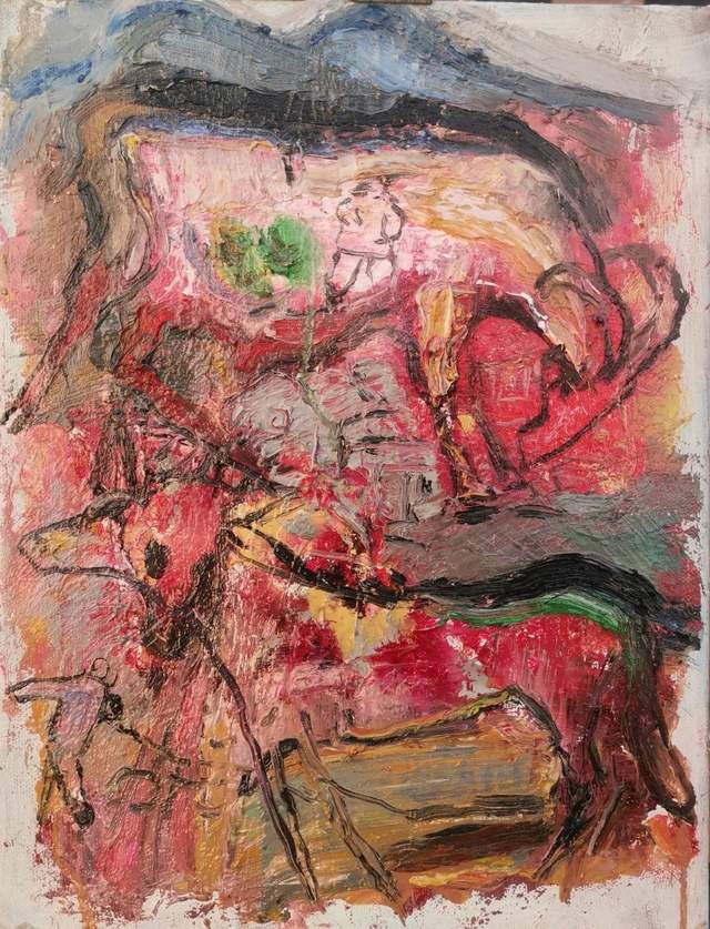 叶城咏《土红色的伫立-追忆1958 》油画