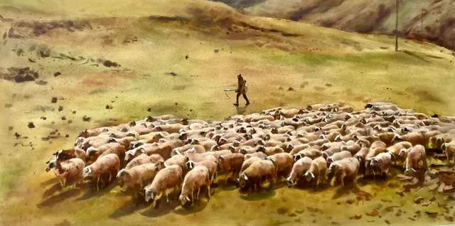 杨青《野火·荒原》水彩
