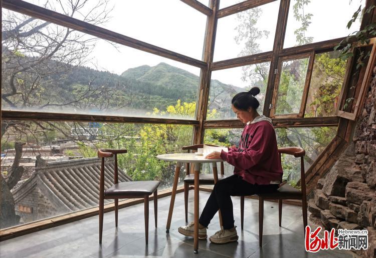 2022年4月22日,在石家庄市井陉县南障城镇吕家村,一名游客在阅读。