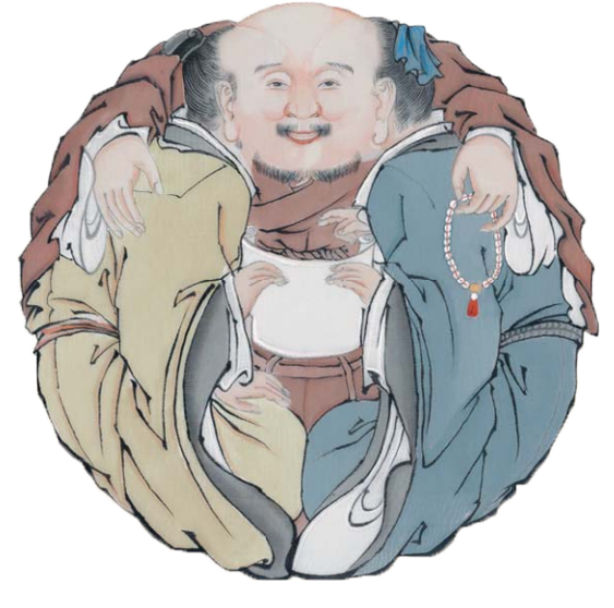 看似一人實三翁,佛門彌勒笑居中,儒飾方巾處右翼,