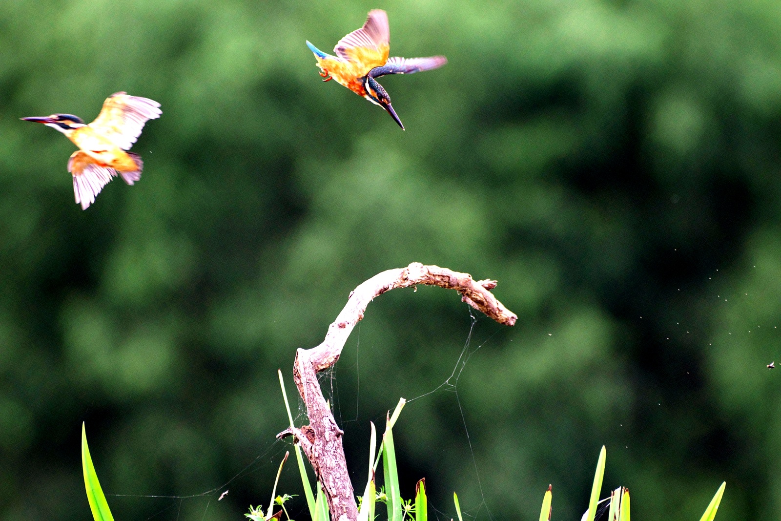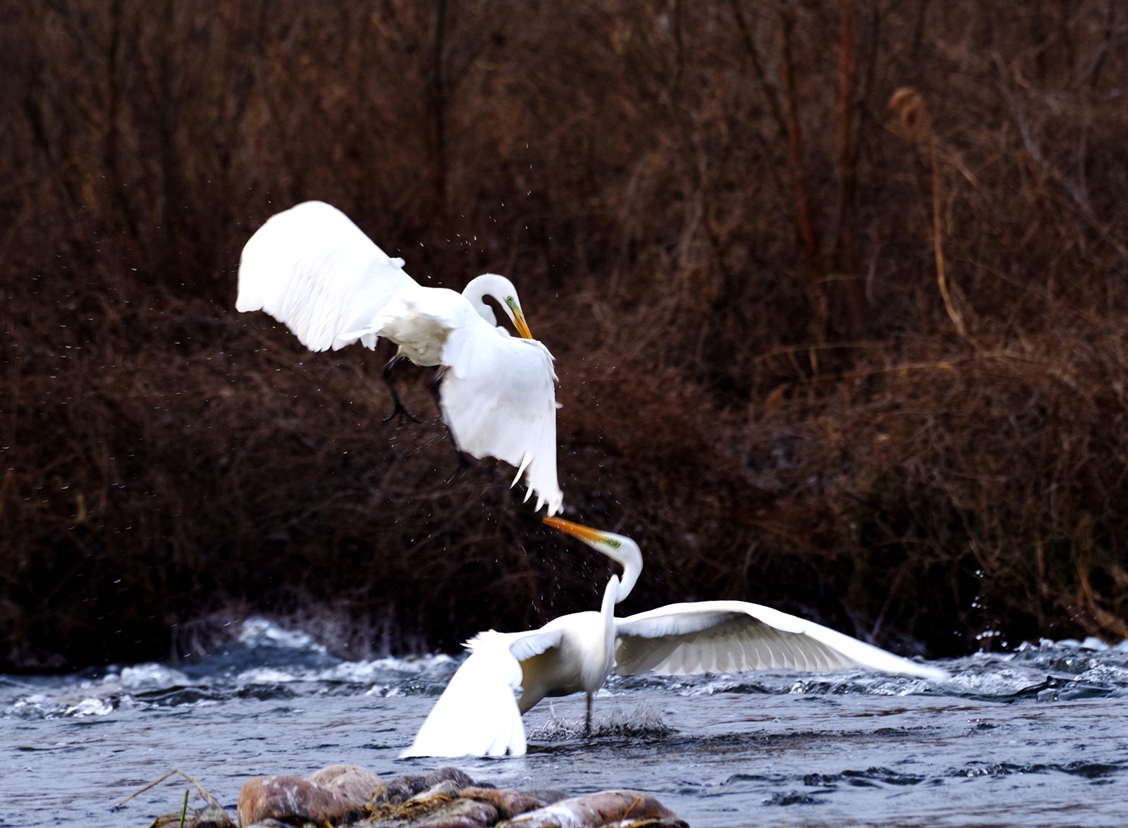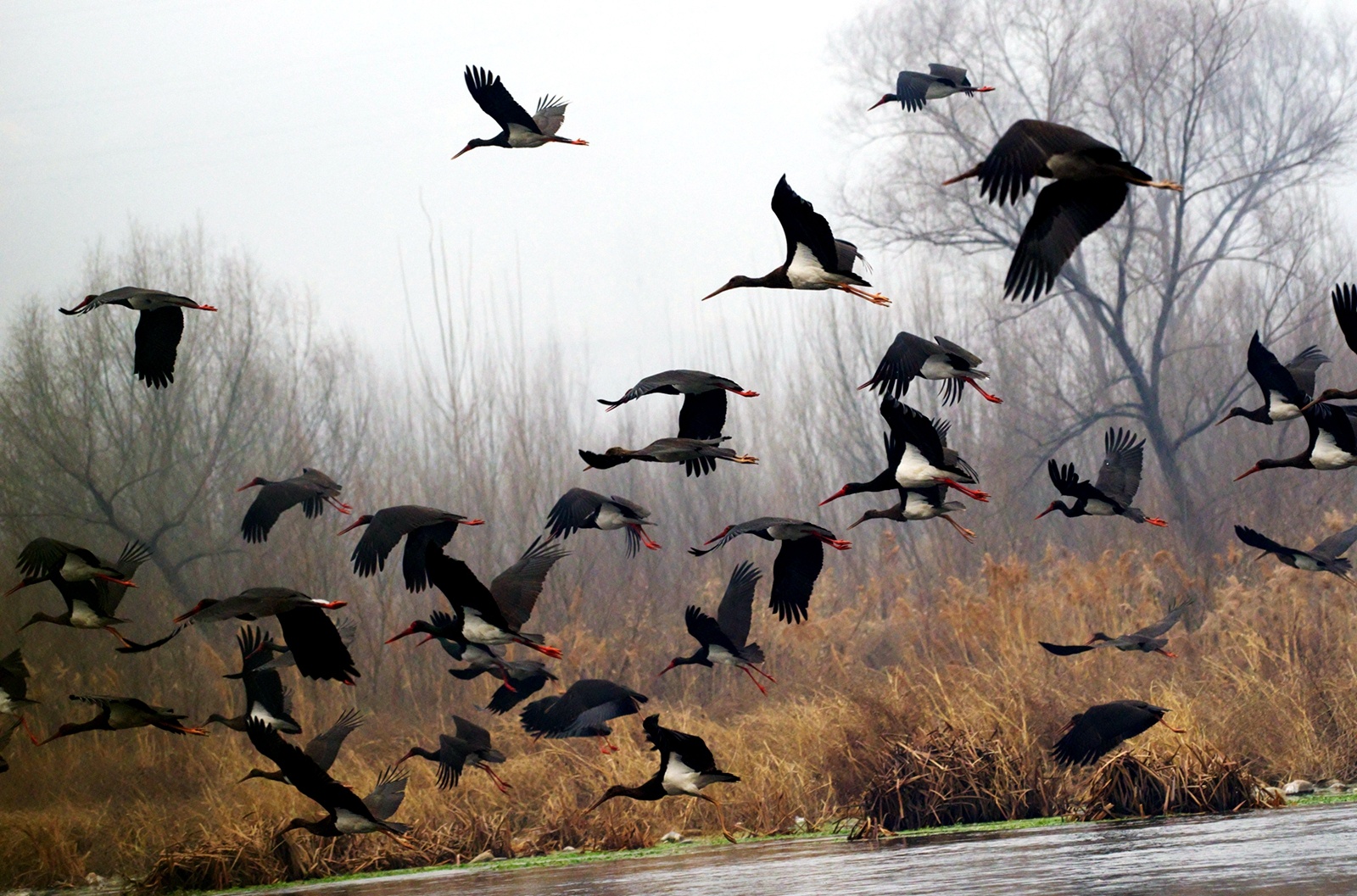 石家庄市井陉县绵蔓河湿地,每年都会吸引黑鹳、秋沙鸭、赤麻鸭、冠鱼狗、白鹭等多种水鸟在此栖息、玩耍。曹晓波 摄