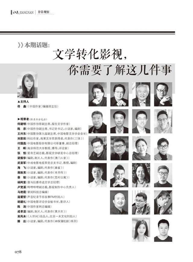 近期,由作家梁晓声的长篇小说《人世间》改编的电视剧引发热议。早在电视机在中国普及之初,中国古典文学四大名著改编的影视剧就曾广受欢迎。文学转化为影视剧在中国经历了什么样的历史脉络?什么样的文学作品适合改编为影视剧?影视公司喜欢购买什么样的文学作品?文学作品改编为影视剧之后,作家会得到哪些收益?在欧美日韩等影视产业发达国家和地区,文学与影视之间是什么关系?未来中国,文学转化影视将会呈现哪些趋势?本期“非常观察”栏目特邀《中国作家》编辑部主任佟鑫女士主持,由她广泛邀请作家、编剧、导演、影视公司负责人、业内专家学者等相关人士,就上述话题共同探讨。