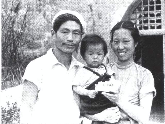 资料图4:1945年,萧军、王德芬夫妇与女儿萧耘在延安桥儿沟东山