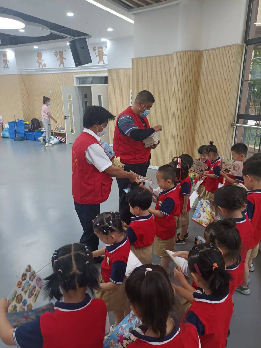 温德军和刘意给孩子们送来了学习本、图画本、漫画、贴画等学习用品。孩子们收到礼物都特别开心。温棋羽小朋友问:为什么过“六一”儿童节?这也是许多孩子想要了解的知识,海棠苑的老师现场给孩子们介绍了“六一”国际儿童节的来历。