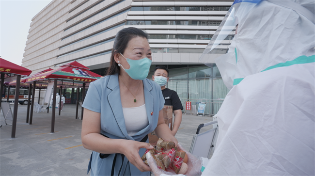 驻马店市消维会秘书长梁丽在高铁站慰问威盾安保一线防疫人员