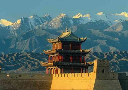 地势最高的嘉峪山上,城关两翼的城墙横穿沙漠和戈壁,向北8公里连黑山悬壁长城,向南7公里,接天下第一墩,自古为河西第一隘口。
