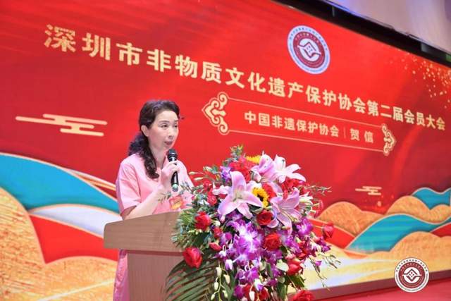 本次会员大会召开得到文化部非遗司、中国非物质文化遗产保护协会、中国工艺美术学会非遗工作委员会、深圳市政协文史委的关注和支持,原文化部非物质文化遗产司巡视员、国家非遗展览展示研究中心专家委员会主任马盛德以及中国非物质文化遗产保护协会分别致以贺信,由中国非物质文化遗产传承人群研培计划咨询专家、广东省文化和旅游厅非遗处原处长张梅在会上进行宣读。