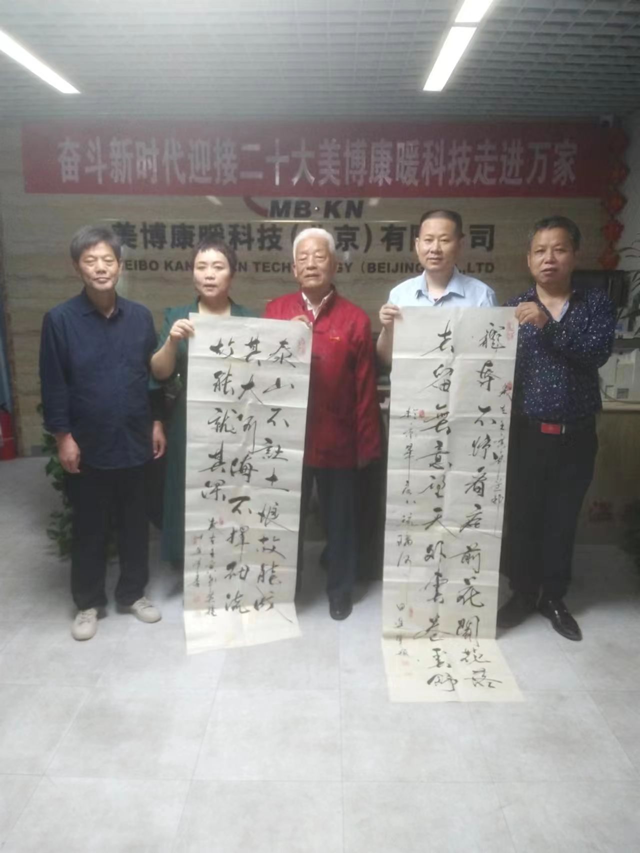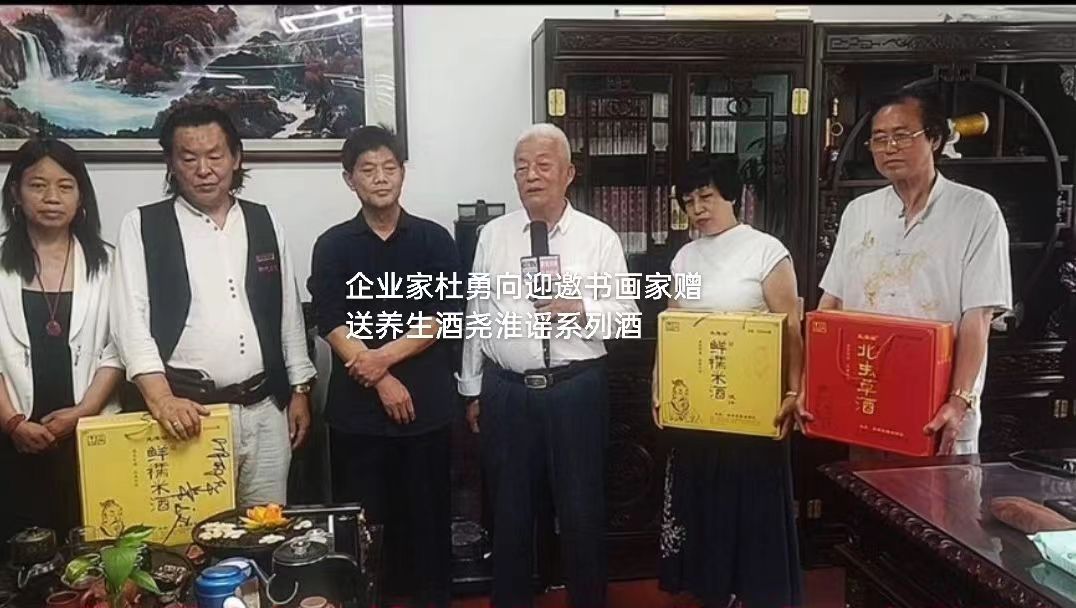 国礼艺术家田进军副总经理迎邀为美博康暖科技北京有限公司现场创作了两副书法。百忙之中,北京尧淮谣酒业有限公司法人杜勇,现场为参会书画家赠送了养生酒,希望能够为艺术家们的创作提供健康保障。