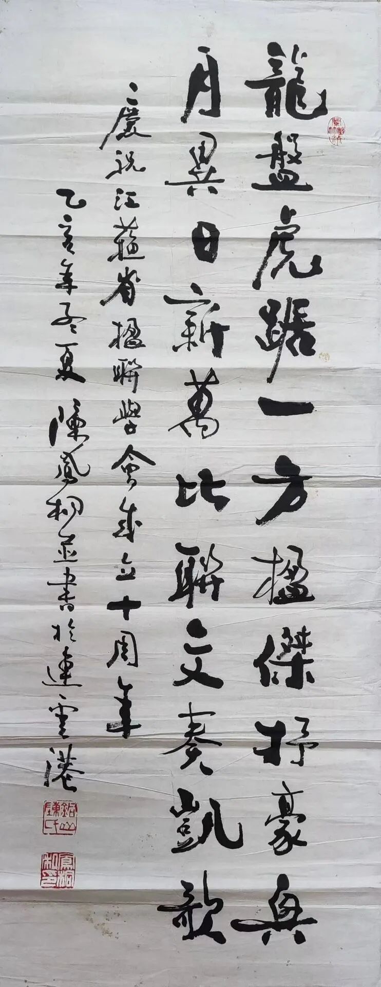在滁州期间,陈凤桐得以与沙翁走近,一同登上“醉翁亭”,一起谈诗论道。笔会上,诗人林从龙先生撰联,陈凤桐舔墨挥毫,一气书成,其书风清新灵动,超凡不俗。这些都看在文怀沙的眼里,老人家非常赏识陈凤桐的才气,当场书“有容”赠他参悟,并将他的名片留给了这位比他小29岁、初次相识的学员。