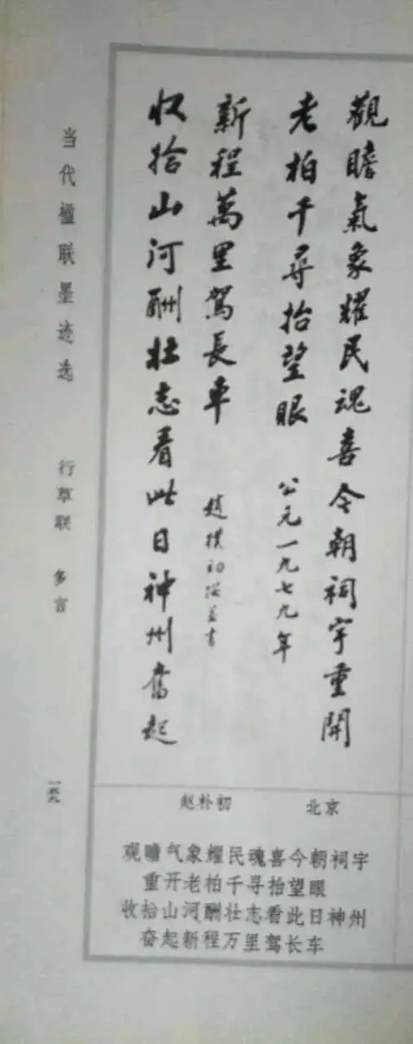 1981年5月,中国书法家协会成立大会期间,陈凤桐赴会场,有幸求得赵朴初题写的《当代楹联选集》墨宝。随后,赵朴初书“观瞻气象耀民魂喜今朝祠宇重开老柏千寻抬望眼;收拾山河酬壮志看此日神州奋起新程万里驾长车”的长联入编“联选”,拉开了与连云港笔墨情缘的序幕。
