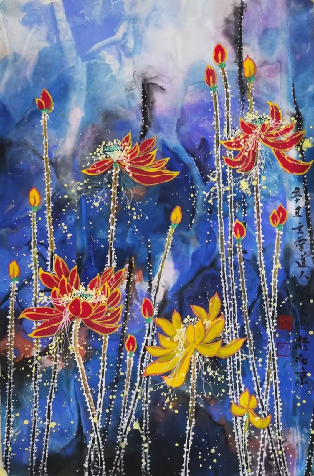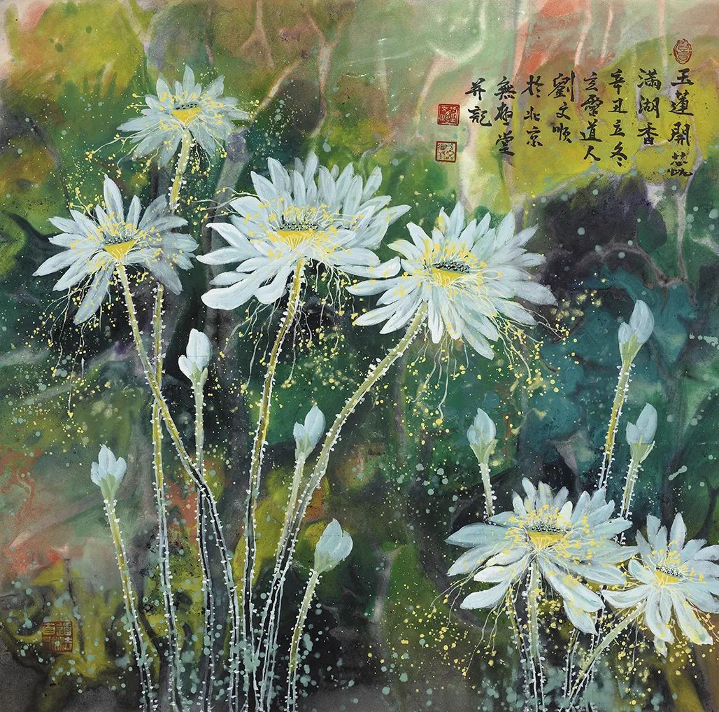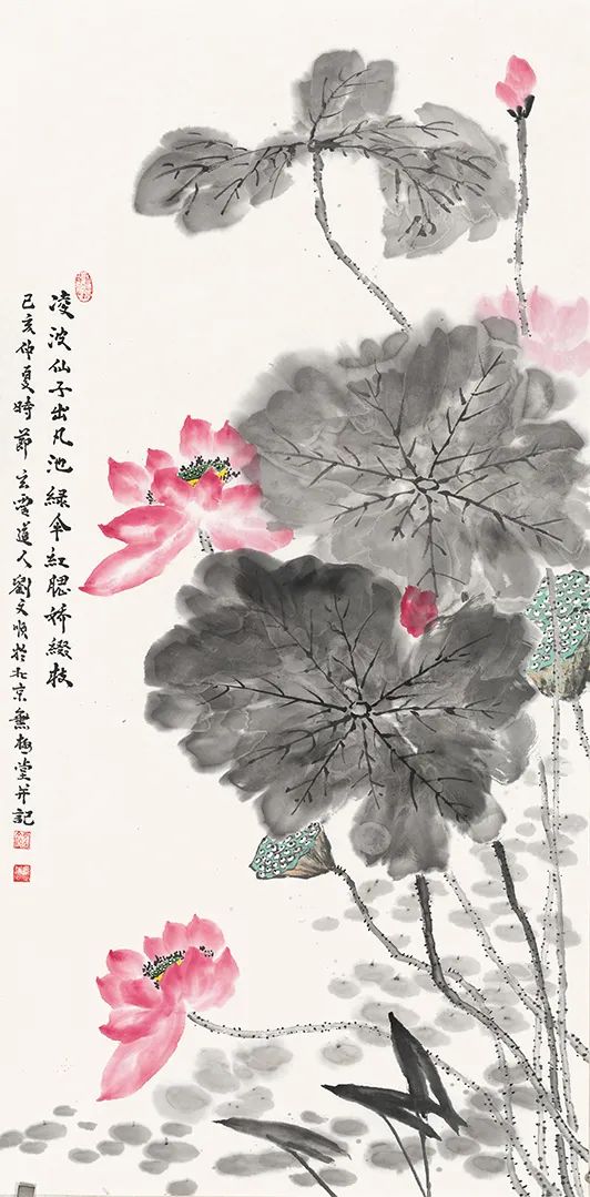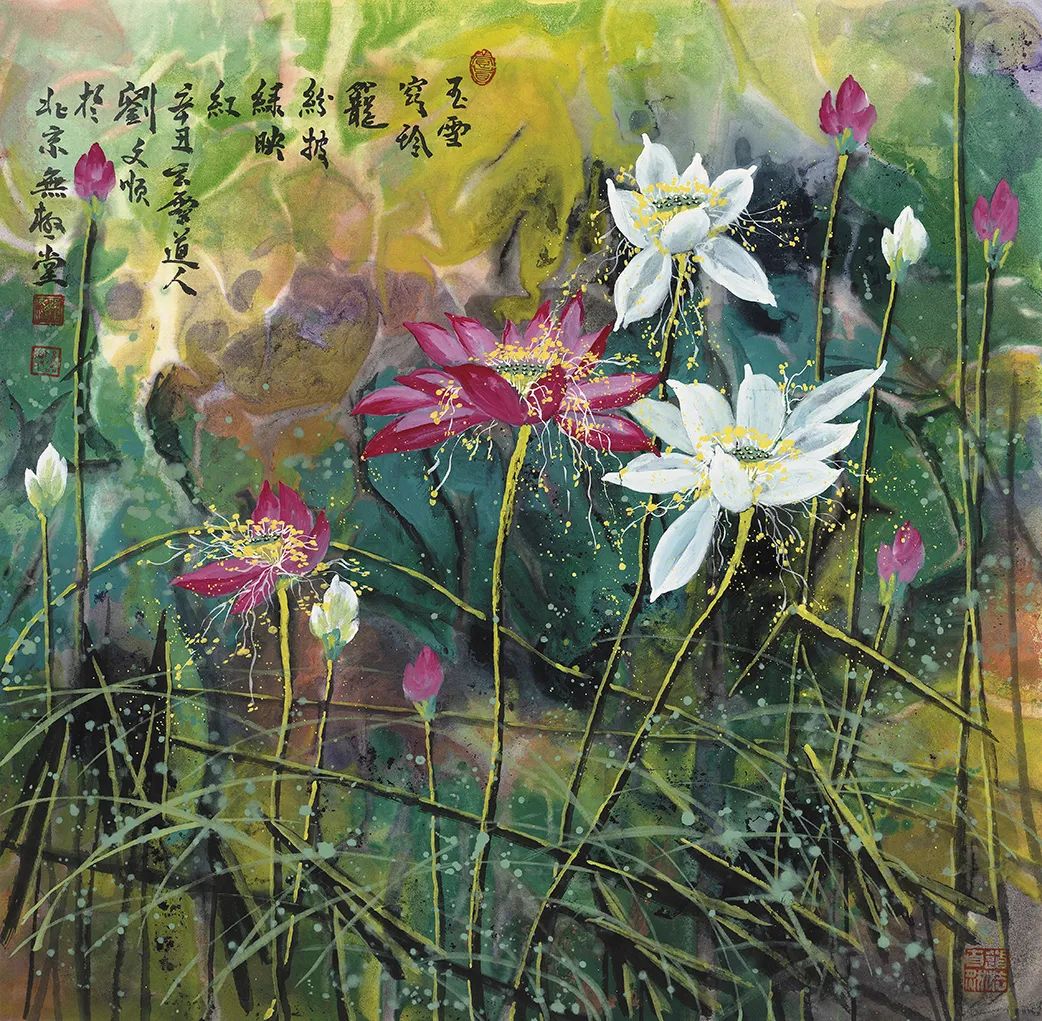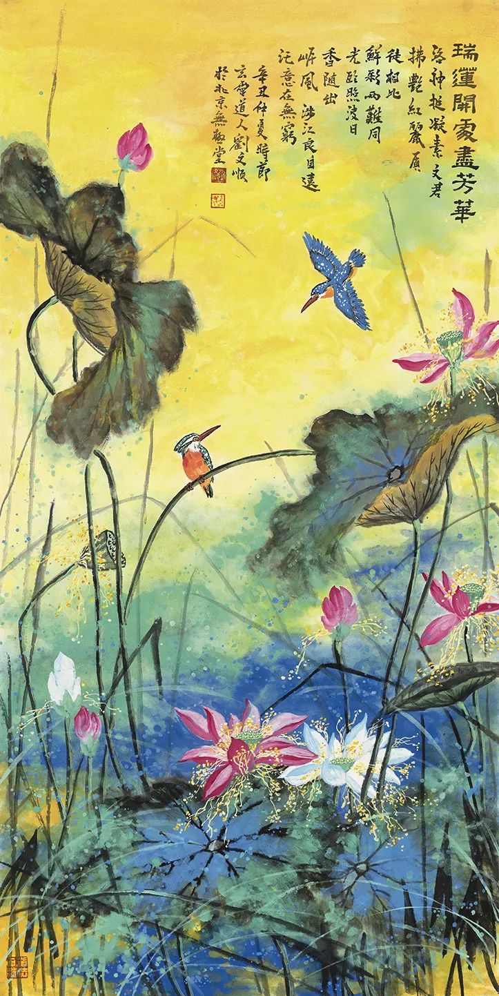 北京东兴瀚海拍卖四尺整纸泼彩荷花《瑞莲开处尽芳华》13.8万元