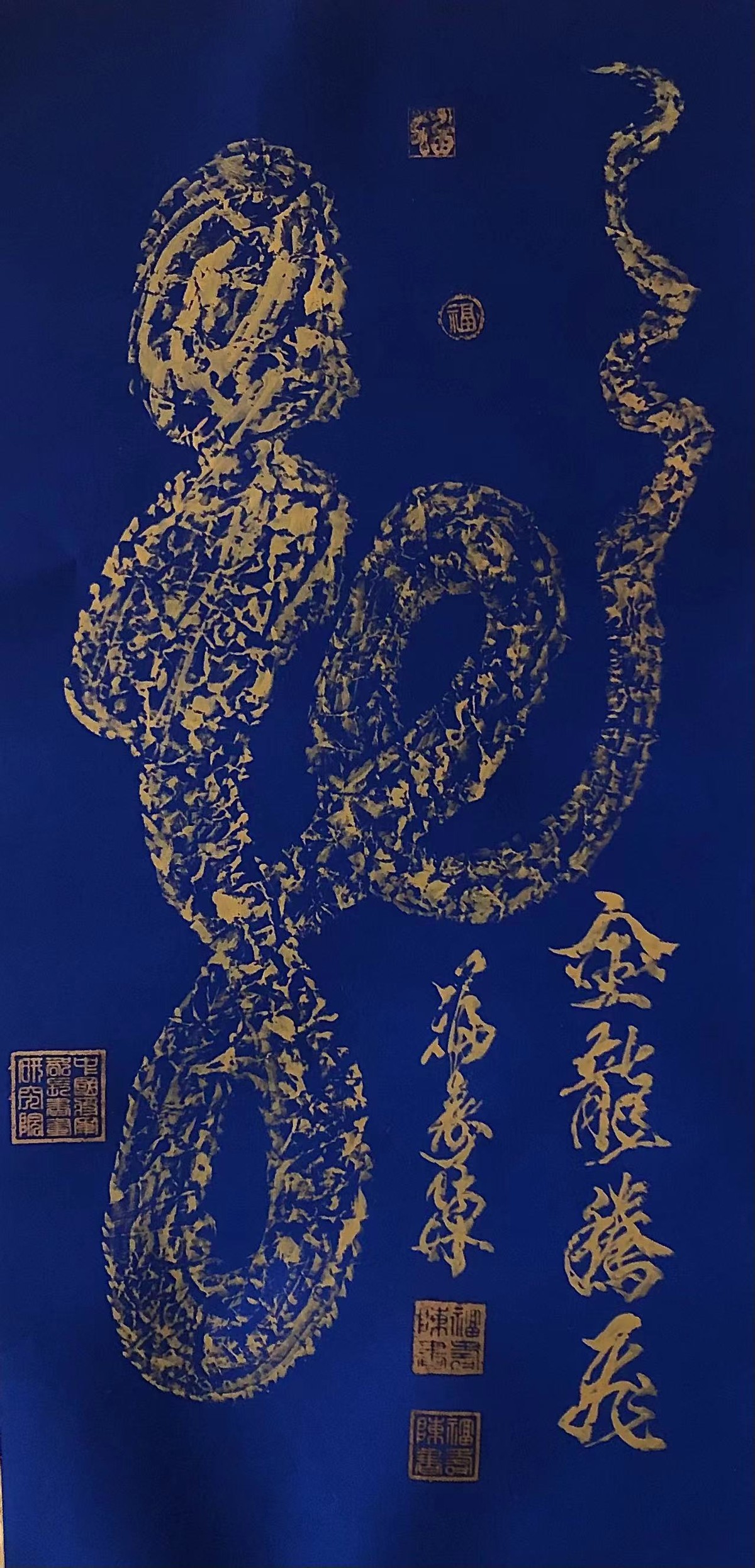作品讲述:这是一幅“一笔龙带鳞”。龙是中华民族的图腾,在中国传统文化中是权势、高贵、尊荣的象征,又是幸运与成功的标志。