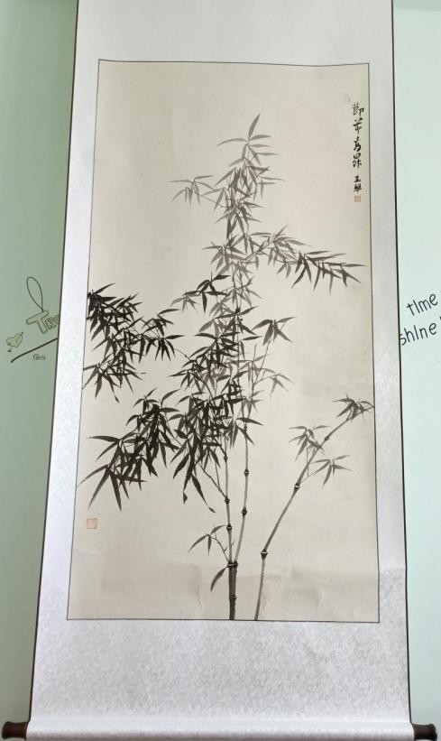 作品讲述:此画临摹清代郑板桥的竹图。竹子象征着生命的弹力、长寿,象征青春常驻、洒脱挺拔、品格高尚、高风亮节、谦逊虚心。竹子弯而不折、折而不断,象征柔中有刚的做人品格。