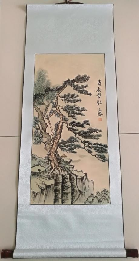 作品讲述:这是一幅浅绛山水画。画中松树生长在高山或悬崖峭壁之上,树杆挺拔苍劲,松叶茂盛,彰显了极强的生命力。松树耐寒、耐贫瘠,寓意着坚韧不拔、顽强不屈的精神。松树手气挺拔笔直,象征着正直的精神。