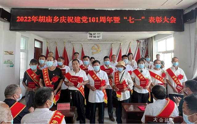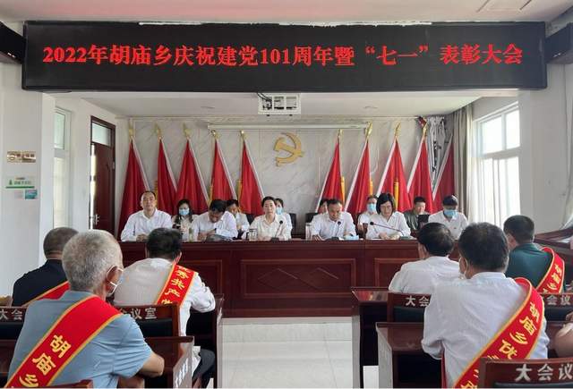 为庆祝中国共产党成立101周年,进一步激发全乡各级党组织活力,激励全乡党员干部继承和发扬党的光荣传统,驻马店市驿城区胡庙乡在落实好疫情防控各项要求的基础上,于7月1日召开庆祝建党101周年暨“七一”表彰大会。党委书记赵敏及其他党委政府领导、所站长、各村支部书记、受表彰的先进个人以及党龄达到50周年的同志代表参加大会,乡长梁松林主持会议。