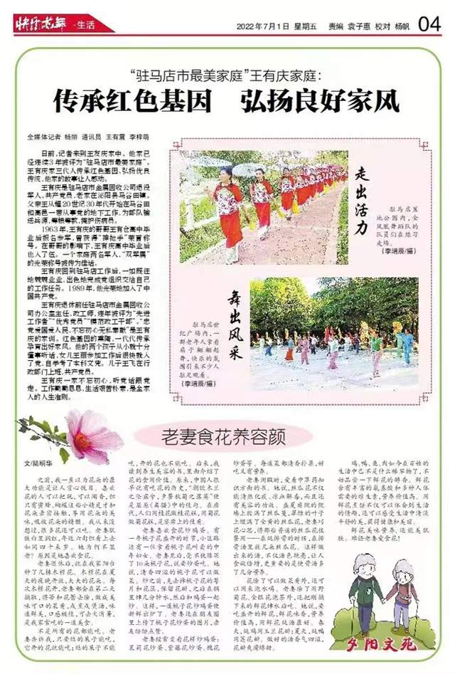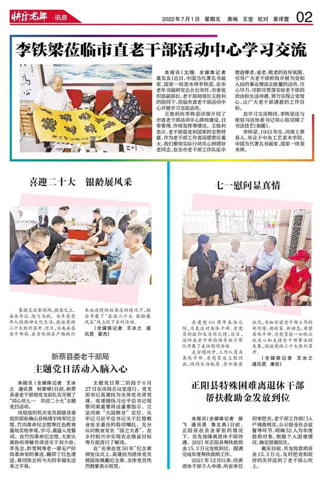 驻马店市老区建设促进会副会长兼秘书长、黄淮学院特聘专家王太广:《快乐老年》的全新改版,让人耳目一新,深受老年朋友的喜爱。改版后的《快乐老年》版式简洁明快、美观大方,内容丰富、实用性强。版面更加贴近老年朋友的现实生活,更能满足老年朋友的精神需求,更能促进老年朋友的身心健康。如果说编辑与老年读者心心相印的话,那么《快乐老年》则是老年朋友的知音益友。希望《快乐老年》的编辑继续与时俱进,开拓创新,摸准老年朋友的脉搏;继续践行社会主义核心价值观,把好办报方向,传递好声音,传播正能量;见证城市发展,记录社会变化,服务百姓生活。以此让老年朋友这个特殊群体,在新时代的赶考路上继续发光发热,继续传承红色基因,赓续红色血脉,弘扬革命精神,守望红色信仰。