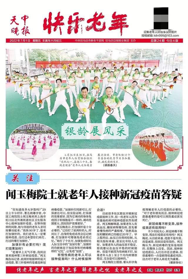 驻马店市老年人体育协会主席邓来法:《快乐老年》就是反映老年人的快乐生活,让老年人看到后感到高兴快乐。现在大多数老年人衣食住行基本上都解决了,需要的是健康快乐的生活,要实现这个目标,需要全社会各个方面的共同努力。报刊既反映现实生活,又起到引导的作用。