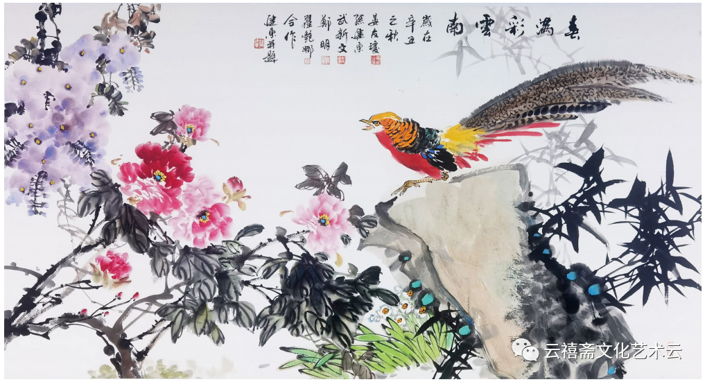 五位老师昆明展览创作的主题画作《云岭春色美》