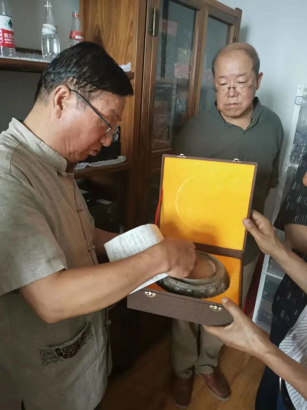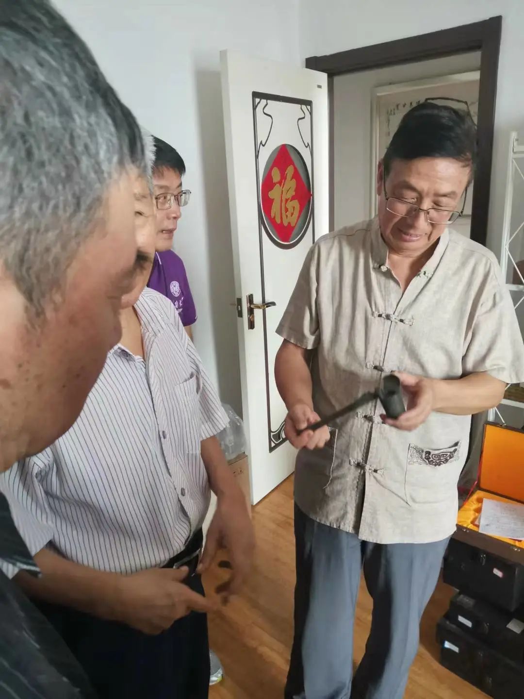 是日,"泽益轩"约了省内各界的近10位文化高人行内翘楚。有知名学者郭守祥,王志文,范富,文史学刊物高主编等。小小的一方砚台,简短的一堂扫盲课,听的先生们目瞪口呆。