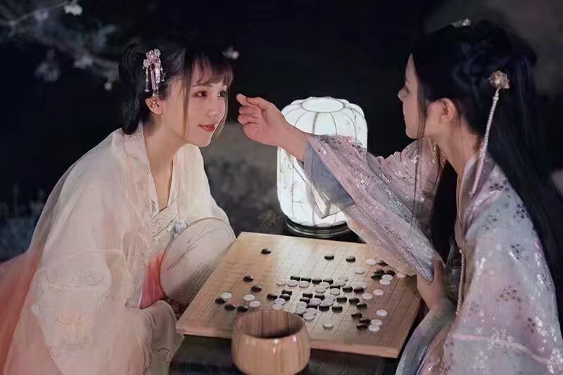 金鲤澄澈共画桥,鸳鸯清浅嬉湖波。