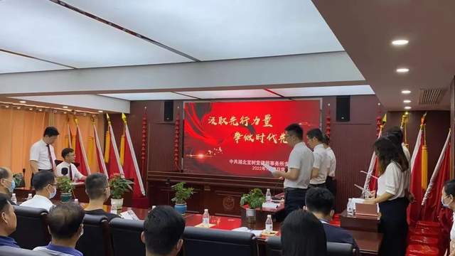 7月7日下午,鄂州市委组织部“两新”工委所属支部约100人莅临湖北宝树堂律师事务所党支部观摩主题党日活动。