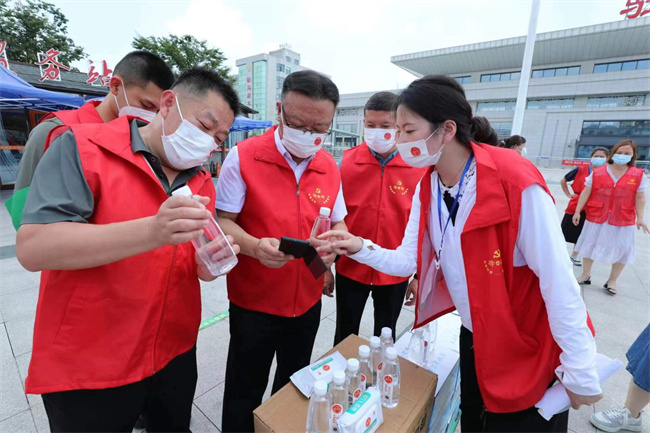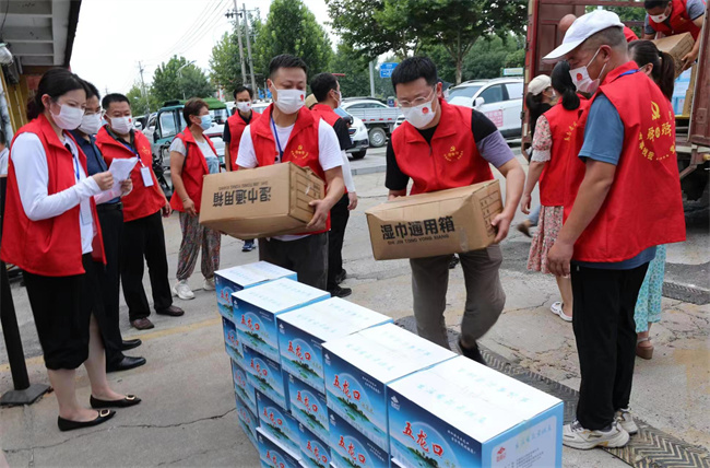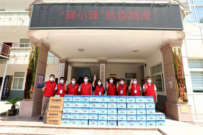 社区是疫情防控的第一线,广大值守在各小区疫情防控的一线工作人员始终坚守在外防输入、内防扩散的第一线,为群众筑起健康安全的“铜墙铁壁”。为关心关爱奋战在疫情防控一线的工作人员,及时传达组织关怀和慰问,把党和政府的温暖落到实处。7月14一15日,区委组织部到各街道办事处、驿小驿党群服务站开展疫情防控一线工作人员慰问活动,向坚守在疫情防控一线的工作人员送去防护口罩、消毒湿巾、矿泉水等慰问品,共向驿小驿站点送去7万个口罩,1000套马甲,700把伞,2000包消毒丝巾,400件水 。