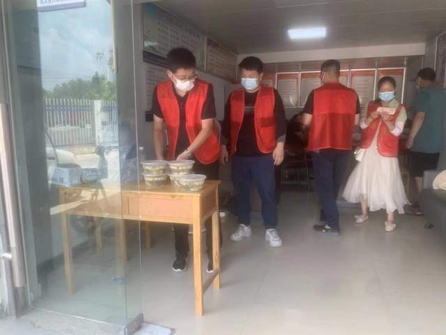 社区卫生服务站医生司永亮,了解到社区党员干部坚守岗位,连续奋战,饿了吃泡面,渴了饮冷水,吃不上一顿热乎饭的情况后,慷慨解囊,购买40余人份盒饭送到社区党员干部手里。辖区新潮门业老板余铁钢、众信市场商户杨铁锁、汝南鸡肉丸子汤老板牛华彬、琢玉堂老板涂海龙爱心接力,相继为社区党员干部订购200余人份盒饭、10箱水果、10箱矿泉水。华苑小区居民杨老太太为工作人员送来了绿豆汤和熟鸡蛋。据统计,新一轮疫情狙击战开展以来,辖区群众通过各种方式共为社区提供各类支持20余次,捐助各类物资一万余元。