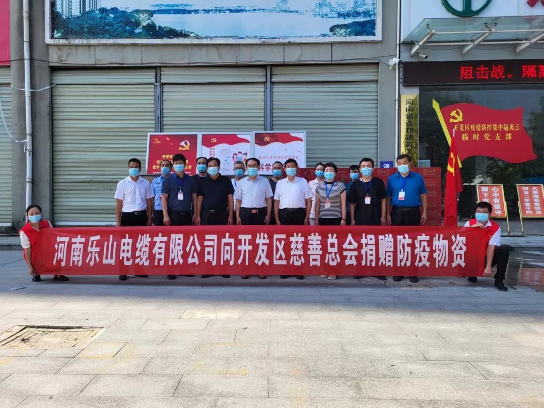为支持驻马店经济开发区疫情防控工作,共筑抗击疫情钢铁防线,河南乐山电缆有限公司党支部、工会积极响应,于2022年7月17日,董事长李全岭,党支部书记、工会主席李长生带领公司党员志愿者向经济开发区慈善总会捐赠一批抗疫物资,支援抗疫一线的工作人员,为坚决打赢疫情防控阻击战贡献力量。
