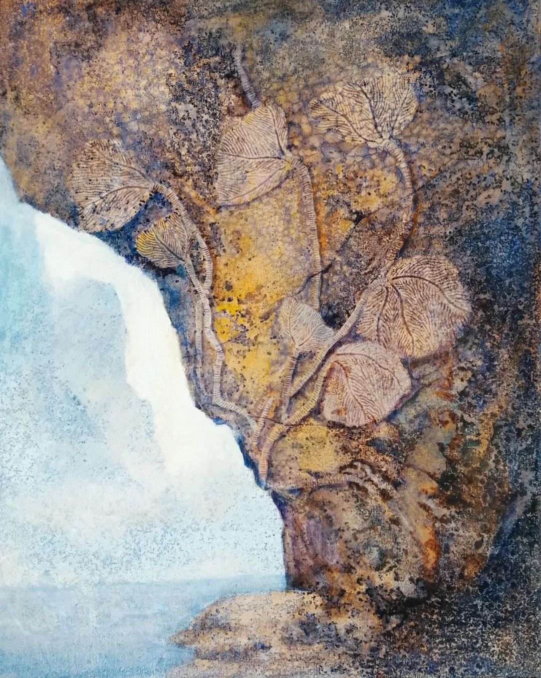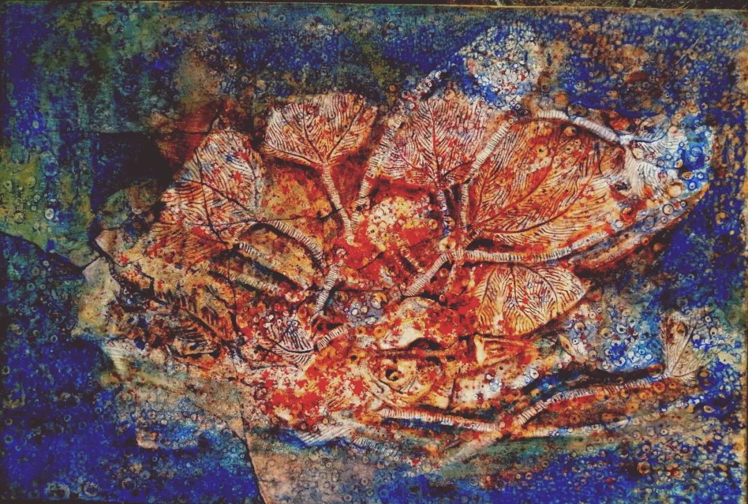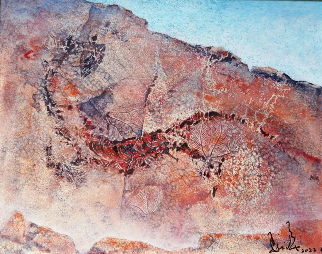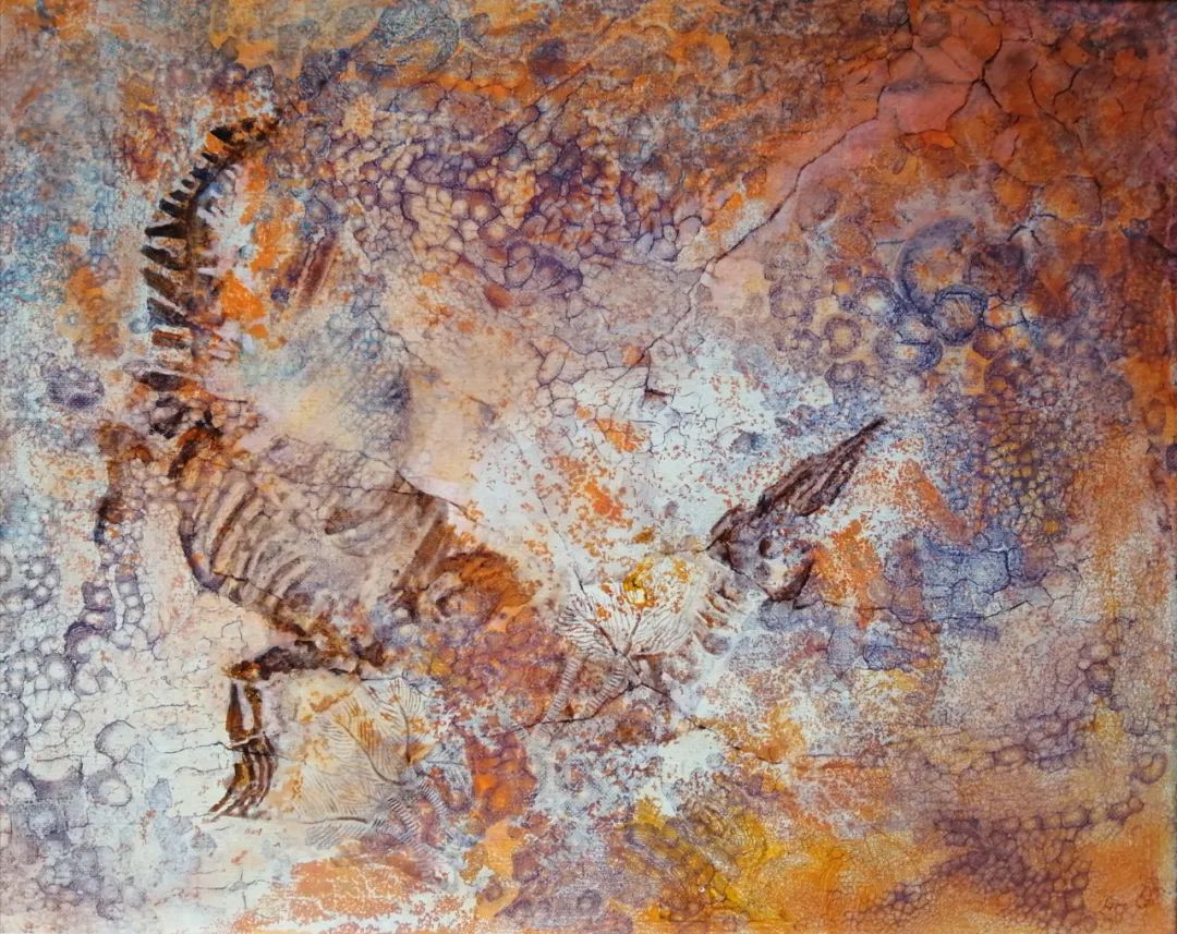 海百合是一种具有科研价值,考古价值和艺术价值化石群,它那千姿百态和五彩缤纷的色彩让我时刻都在创作的激情中,如能够把它用绘画的形式来表现更能提升到另一种审美,特别是用岩石矿物质颜料来创作更能达到艳而不俗,更有视觉冲击力,又使它不只停留于原化石视觉中,又能表现它的最终生命过程,如在溶岩中的挣扎,海水中游离,干旱中的绝望,寒冷中的不适等等……