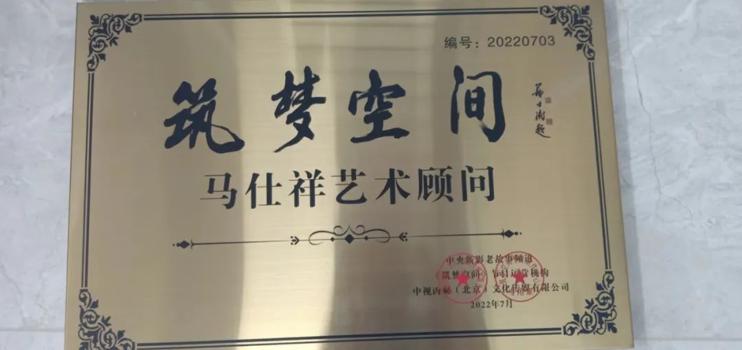 中央新影老故事《筑梦空间》艺术顾问铜牌