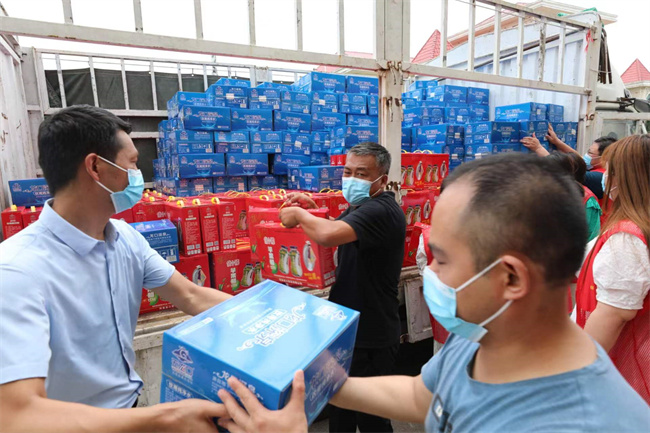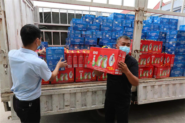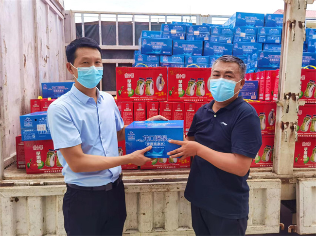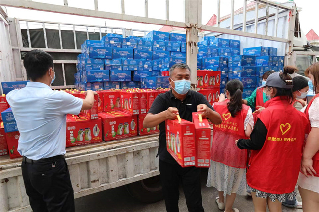 7月19日,驻马店市五龙口酒业有限公司负责人带着全体企业人心愿为驿城区防控抗疫一线工作人员捐赠生活物资,用实际行动支持疫情防控工作,全力抗疫。