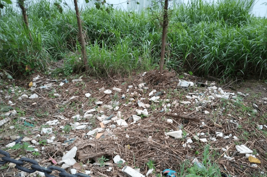 3、滨河游步道外侧,大量白色泡沫及钓鱼爱好者留下的白色垃圾待清理;