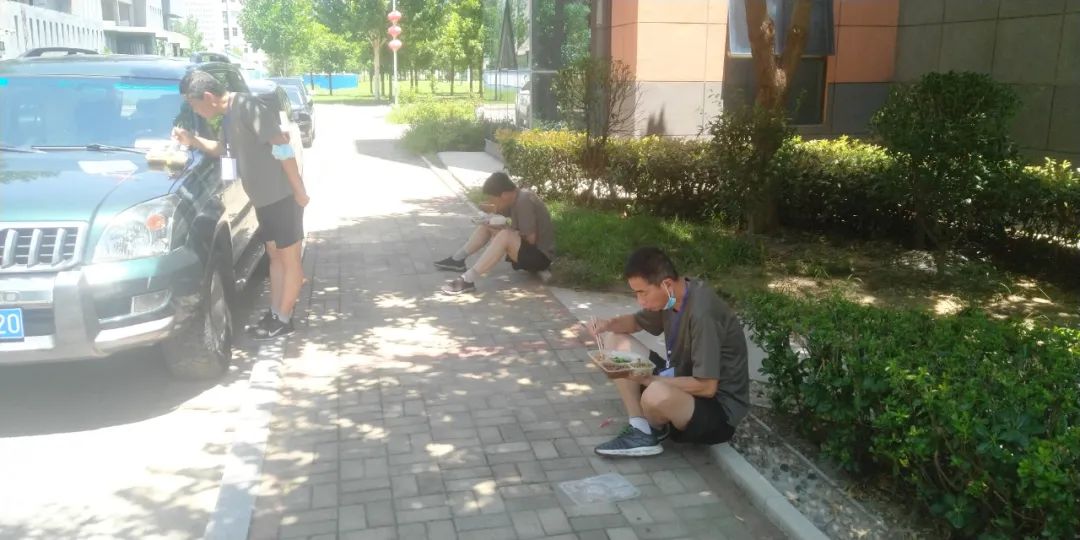 后勤保障组的同志们负责隔离对象的生活、防护物资保障,巡视水电气暖等设施设备的运转状况。他们随时待命,发现问题及时处置。饿了,蹲在路边就是一餐;困了,躺在椅子上小睡一会。