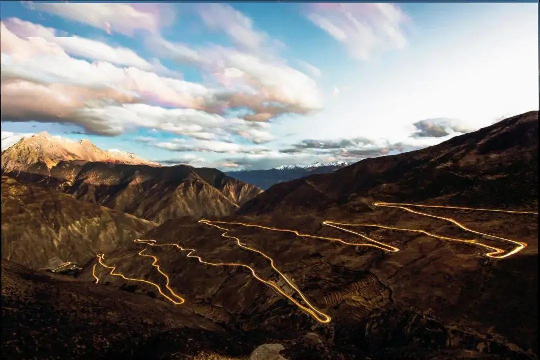 跑了几十公里后,小堵了20分钟。通行后才知是车祸。摩托手和汽车对撞了,看样子不轻,生命堪忧。自驾车者安全行驶太重要,无论事故大小,对一个人家来说是天大的状况。到了居住地芒康县已经10点钟。行程布局,变化无处不在。芒康县排队3个小时,刷了"藏易通”健康码,通过了防疫检查。摸黑夜路到了驻地。这也是没有办法的事。房间是预订好的。个个疲惫不堪,晚饭自己填巴点儿解决。找到床板子倒头就睡去。这慢慢的才理解了"318此生必驾"的内在意义。除了让你看了世上最美丽的风景,也让你体会欣赏美丽所付出的代价。这真的是一次修心修行之路。7点半从如美出发。临行在看到了这个偏僻小镇的模样。澜沧江就在村旁流淌,水流混浊。如美村在大山拥护的深窝,温度较高,植被也稀疏。老天厚爱,这个村子有特别的资源,那就是"低海拔"。果然,不是我想到了,资本嗅觉更灵敏。压准了今后西藏的旅游井喷,狭窄的地方到处是兴建酒店的工地。在当地还驻扎有中交建,中铁建的国家队,正推进川藏铁路的建设进度。不亲临现场,不知道这项伟大工程的难度。处处是飞鸟也惊心的陡崖峭壁,横断山,一个难字儿可不够说。预计的行程是经左贡、八宿2县,目的地是林芝市管辖的波密县。如美出发到左贡的路上,碰到一队执行任务的军车。后还有警车护驾。在西藏,解放军是备受尊重的。"金珠玛米亚古都"。军人为西藏的建设付出了血的代价。警车,后边紧随5台藏游的摩托骑手,我们的两个车紧跟,再后是有序的几公里长蛇车队。真像大型国宾仪仗长列。逗的大家好乐。摄影家们抓拍的忙乎。以至通过近海拔5千米的山口也没觉得气喘。一路不会累,到处是风景。左贡县城建设的很漂亮。城市不大,但细节管理的好。藏区的城都一个范,山在拱卫,城挤在狭小的空间。但只要规划的好,层次错落,立体感优美。生活在这里真有香巴拉的感觉。左贡的风景优美。路过邦达地区,一旁就是漂亮的邦达草原,姐妹湖。这里有自驾者的大型露营地。业拉山口观景点小憩。4658米高程。远望多拉神山,各种形态的山兄弟组合。除了留美留影,也送去我们的祈愿。自然的奇观应有说不出的玄机。藏人对雪山格外的尊重。每个区域的领衔高山雪山,必被人格化神山或圣山而顶礼膜拜。梅里雪山才5千多米高,但左贡八宿一带至为尊重。每座雪山都有一段神格级的传说与故事。邦达镇到八宿县城,这一段是318自驾者永远的记忆。这叫著名的"怒江72拐"。海拔高程直下一千多米。有人说12公里,有人说16公里。一边是临江的悬崖绝壁,一边是松动易落的土石突兀,真够惊险。下午4点路经八宿县城。八宿是藏语中意思为"山脚下的勇士"。文化抽象就很刚勇。八宿城周围的山不至于高大,但造型颜色十分独特。红沙石山靠丹霞地貌,黄色的,黑色的山体被雨水冲刷成多种造型,还有湛蓝色天色,洁白的云朵做背景,哇,天然画屏。有刺激的几十公里,是驰骋在怒江峽谷之中。怒江咆哮,绝壁如削,才感觉到什么叫怒江。八宿境内的然乌湖,非常的明丽,她是怒江的调峰湖。然乌湖很大,与内地的水库不一样,她是双重性格,原始森林映衬的一段,娴雅恬静,大姑娘般素容高贵。又一段就是和怒江的活水奔腾。洒脱不羁。原以为一路跑的还顺当,天黑之前到达。在八宿然乌,又排队做了一次疫检。又耗去一个多小时。到达波密县旅馆,又十点多了。大概不只我消极,真想吃一颗后悔药。