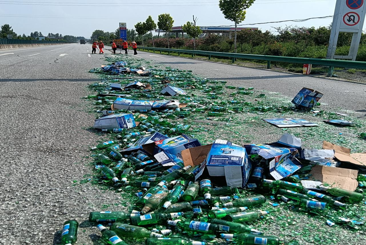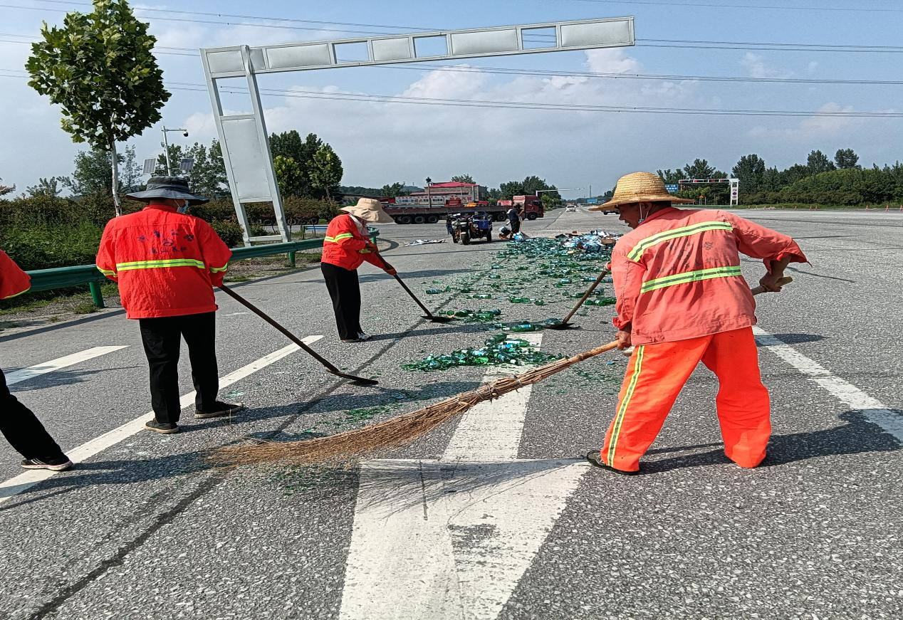 连日来,驻马店各县进入“炙烤模式”。然而,确山县公路事业发展中心干部职工为保障所辖道路安全、通畅,迎酷暑、冒高温,始终坚守在公路第一线,确保公路安全畅通。今天下午2:30分左右一辆装载啤酒的大货车因故大量的啤酒瓶在西南绕城和107交叉口洒落,大量的啤酒瓶碎片铺满了路面,长达数十米,严重影响了其他车辆的行驶。15:00接到确山县110转达的群众热线后,公路事业发展中心立即组织员工及时赶到现场进行清理。