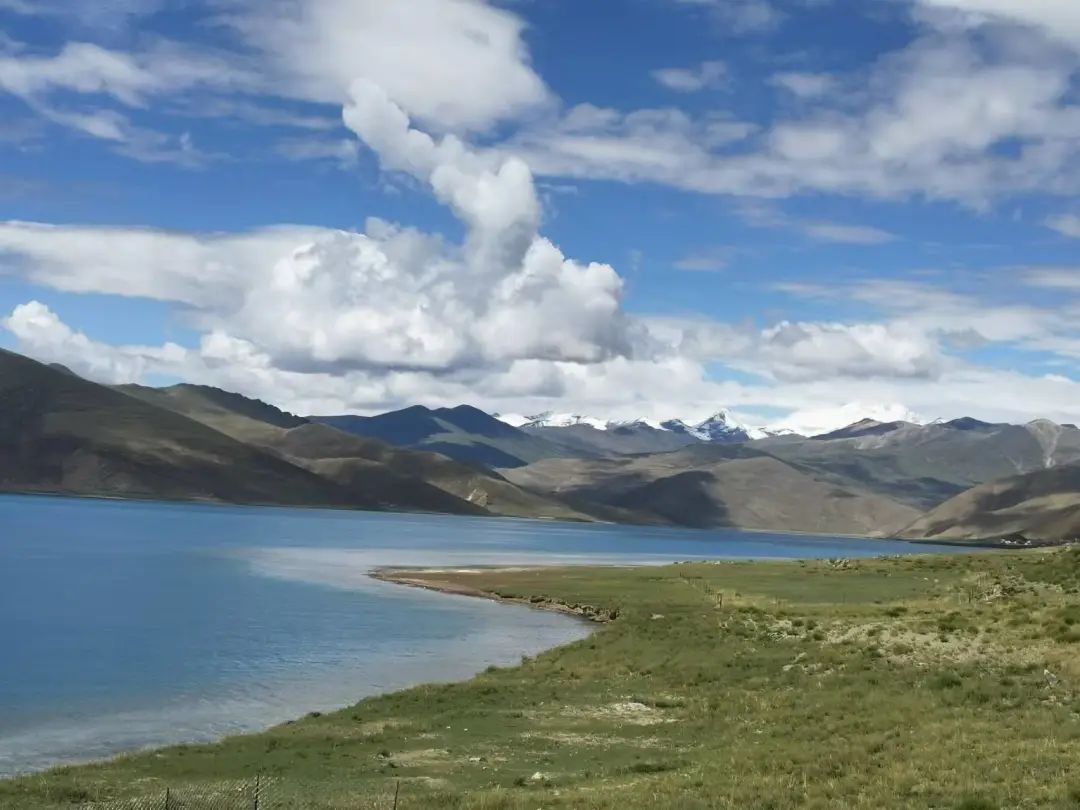 藏族人形容羊湖"天上的仙境,人间的羊卓,天上的繁星,湖畔的牛羊"。冠绝藏南的羊湖就是如此。牦牛群,羊群,远方的雪峰,明丽的阳光。想怎么去感受,描绘,只有你自己来看了。拍照,留影,美好的东西写进血液里镌刻在骨子里才不败。羊卓雍措的神圣,胡说盘点有几方面了。羊湖所在的浪卡子县是山南市。山南是西藏悠久历史文化的发祥地,早在与秦始皇统一中国的前2200年前时,山南最早出现了部落联盟那样的方国,产生了赞普(类似藏王)。到公元7世纪,第33位赞普松赞干布从山南走出来,统一藏区,以拉萨为政治中心。后来宗喀巴大师进行藏传佛教改革后,建立达赖喇嘛的灵童转世制度,寻觅转世灵童的隆重仪式和访寻轨迹,就围绕羊卓雍措进行。此外,羊卓雍措在神话中还是藏区护佑百姓的女神。与观音,文殊,金刚手菩萨一起守护藏人的香巴拉土地。羊卓雍措又称"悬在天上的珊瑚湖"。她躺在高原上多枝多杈,像藏传佛教莲花生大师手中的铁蝎子。藏传佛教宁玛派在羊湖有弘法的寺庙,据说还有莲花生大师的手印。羊湖的路边,时而可见搭建的露营圆型透明帐篷。能展开想象力,到了夜晚,住在里边伴着繁星,拥着羊湖,哇,香巴拉瑶池。