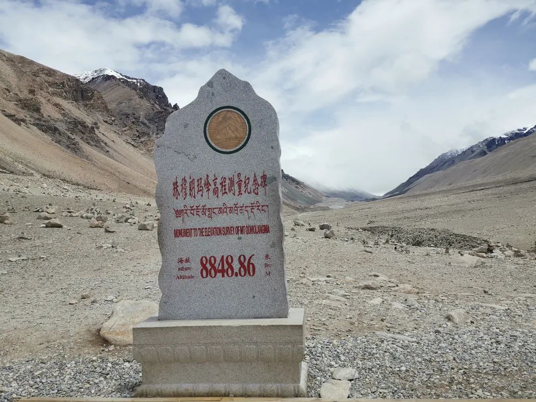 318国道过了拉萨往西,基本在高海拔的天路运行。路修的平坦,相对能跑起速度。国家有了珠峰自然保护区,旅游人群多起来,带活了沿线拉孜,定日县的乡镇。旅游经济红火,沿线的汉藏百姓到处盖房子,资本家也纷纷找商机。定日县白坝,天涯山角之地,是明显沾了珠峰的光,酒店,商贸等欣欣向荣,漂亮的休闲小镇已见雏型。晌午时,我们到达珠峰大本营景区大门,激情挡不住,可是要进午门见上帝了。老小纷纷拍照。近8旬的寇大爷也自拍视频,激动的把图片直播给老友。景区大门至珠峰大本营还有90多公里。这一段经过了天路壮观的"108拐"。蛇形路直上至5198米的山口。倒不至于险峻。在八宿县有怒江的"72拐",奇险无比。自驾到核心景区之前,到达旅游服务中心,买票换乘了绿色环保电动摆渡车,一个小时后送我们到达了"绒布寺"。该寺是藏传佛教的小道场,正在扩建中,就在珠峰大本营一旁,因为珠峰,绒布寺成了重要地标。珠峰大本营整齐的一片帐篷,这是供游人住宿歇息的活动型旅游配置。珠峰景区的环保做的可以说非常棒,公厕,木质过道等处,很难见到哪怕是纸屑食物垃圾。大本营,不过就是珠峰前面的一片空敞地,立在三块高大的石碑,供海内瞻礼朝拜圣峰的人们照相打卡。山口的风很大。虽然是大热伏天季节,这是5千多米的高处,人们裹头遮脸,套着羽绒服厚毛毯。一齐仰望远方的女神。珠穆朗玛峰隐匿在云帐后。景区藏民服务员说,见不到是常态,他说昨天才短促露了一面。多想揭去神秘的面纱看到珠穆朗玛女神的真容。尽管以前看过多少次美图片,但不如站在她面前有震撼感,真切而实在,没有镜头和画粉颜色的隔膜。心里千呼万唤,挡在她身上的云帘就是不走。于是就讲一次迷信吧,我静静的坐在石头上,虔诚地向珠穆女神祈祷央求。我们几千里跋山涉水过来,只为见你一面。能不能啊,掀起面纱,哪怕几秒的闪烁也心满意足。又心想,自己的这点儿力量太微不足道,怎么办?就近请求藏传佛教宗喀巴大师,莲花生大师帮忙,请金刚手菩萨,观世音菩萨开恩,一起约请珠峰女神。千里万里西天取经,只为见到女神的一尊真身就心满意足。半个小时的等待后,奇迹还真出现了。几十公里外的浮云渐淡,珠穆朗玛峰的轮廓显现了出来,就那么短短的一霎那间,然后隐去了。就这么一瞬间,我遍身的热流涌到头顶。圆满感觉如是。然后在大本营的敞地,用小石头垒了玛尼堆,祝福我的家人,友人。祈望有好运,永远有圣峰的荣光照耀。临别时,又远站在女神之前,把心掏岀来与她对话。告诉我们的爱神,雪神,福神,我来干什么来了。风很大,好多游人激动的忘了这些,只想与珠峰合个影,留个美丽。打卡石碑立在那里。多数人疯狂的摄影,没有带着思想和心愿,忘了初衷。不净化一回,来的真可惜。返往日喀则的路上,大家忘我的心情无以言表。激动什么,各有各的滋味儿。每一个人有相同的感觉,今生今世今天,一定属于自己毕生的重要日历。驾车出景区大门时,已近黄昏6时。我们兴奋的有些疲劳了。人流车流,看着如痴如醉的男女,傻傻的,期待着,拍呀拍。好笑吧。我们5个小时前也是这样的。