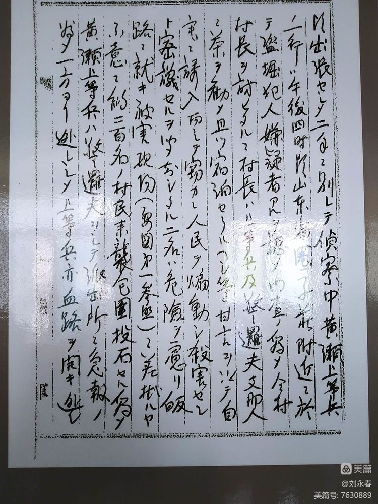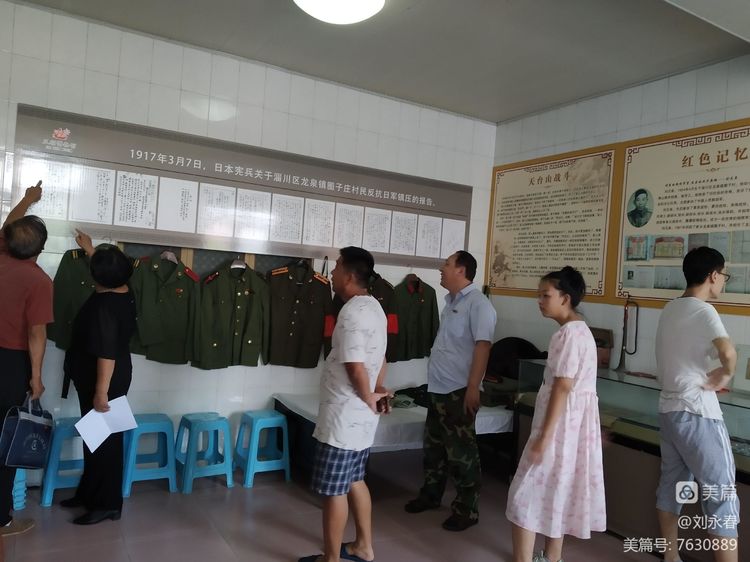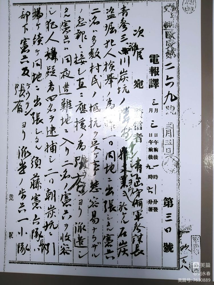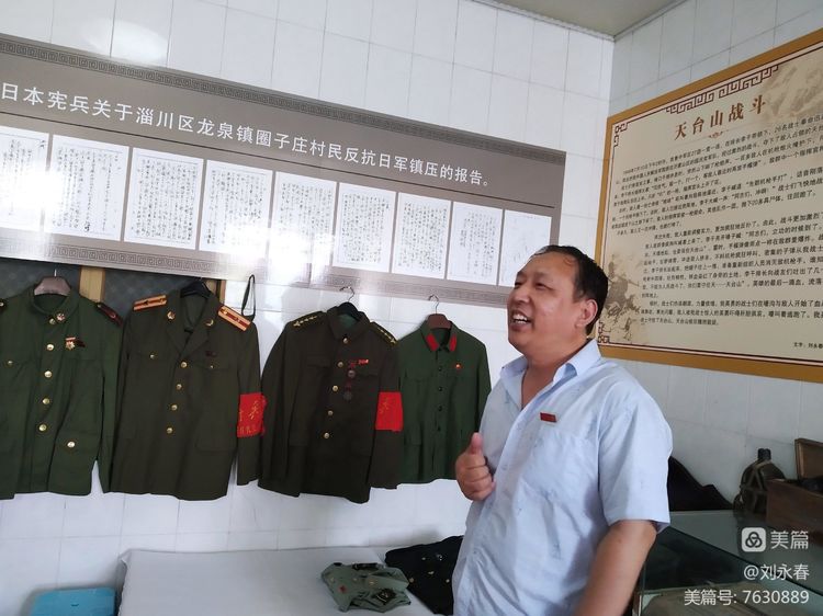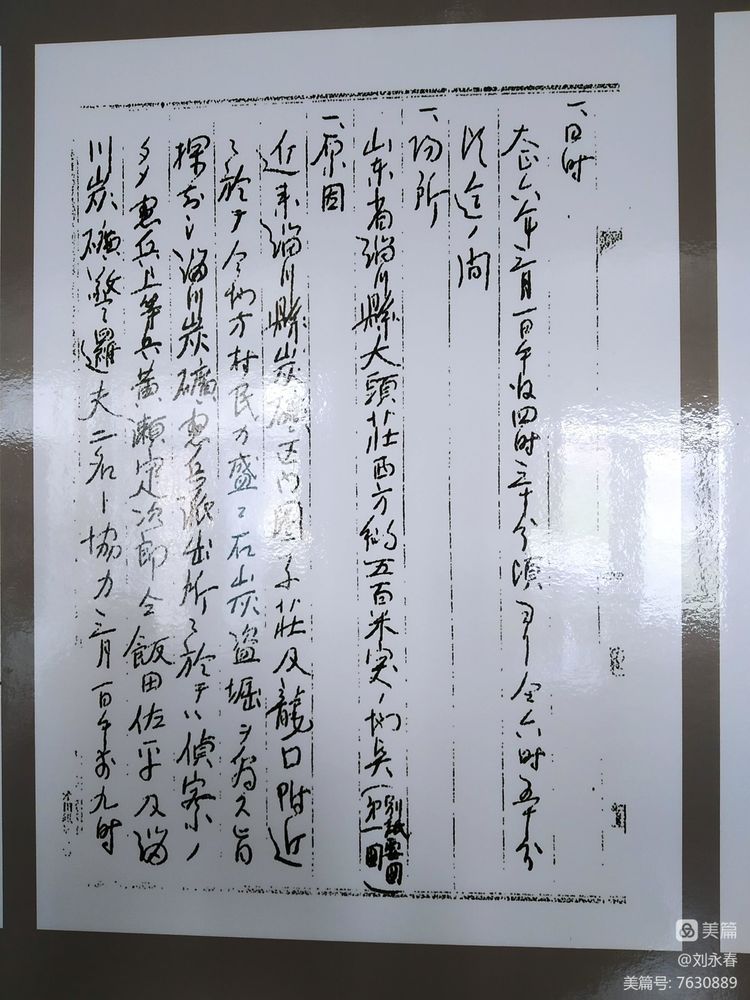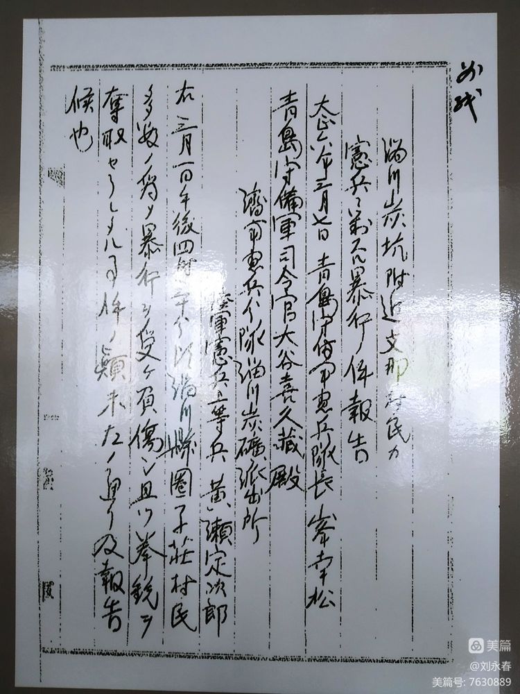 这是博物馆刚刚设置的一块硕大的“1917年3月7日,日本宪兵关于淄川区龙泉镇圈子庄村民反抗日军镇压的报告”展板。展板影印了10几张图片,以图文并茂的形式,反映了105年前,日本入侵中国,强行掠夺淄川煤炭,阻扰村民戚礼有在自己地里挖煊炭,引发圈子庄村民奋起反抗,并痛打日本宪兵的红色故事。