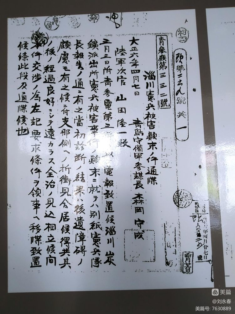 (摄于三顺博物馆·青岛一战博物馆原始资料传真图片)