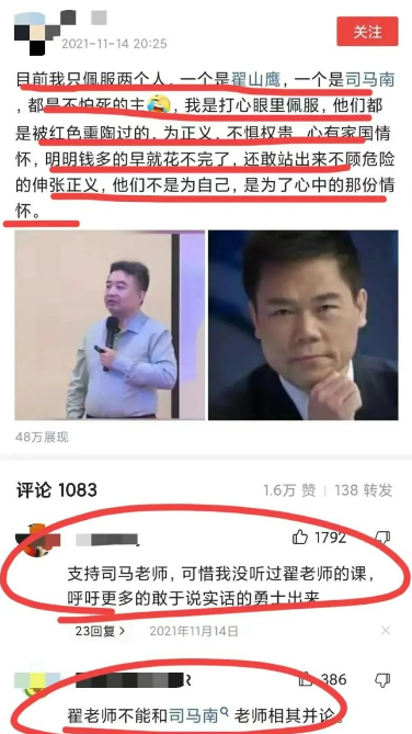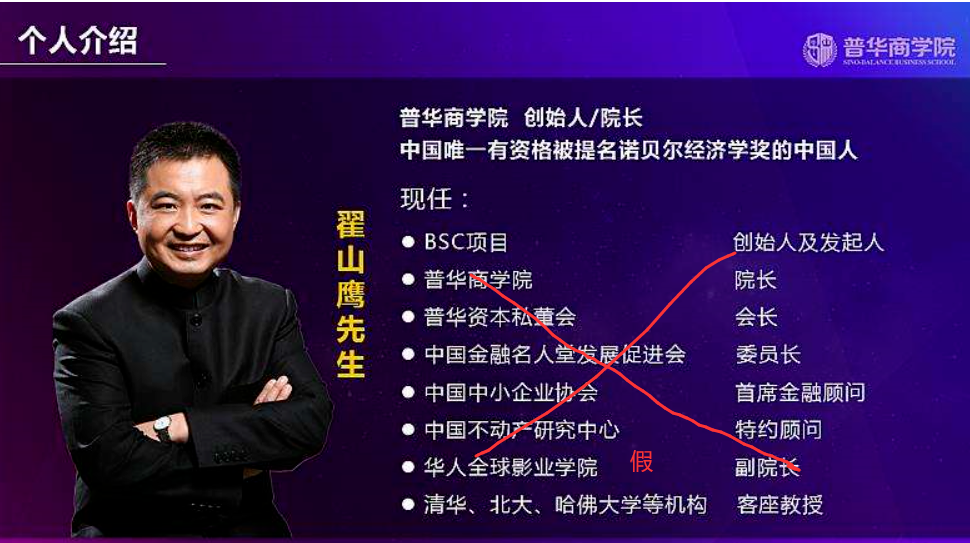 翟红鹰曾是各种论坛、会议的常客,各大平台的视频主讲,卖会员、拉投资、各种付费讲座,声称美国几年崩溃,宣称民主是世上的一种邪恶东西,哪个国家一旦染上这种病,就完了。我们一直说在这个时代你只要掌握了流量密码,那你就离成功不远了,而翟山鹰无疑已经掌握了流量密码,才会有如此多的粉丝关注跟随。翟山鹰善于包装自己,而上面这一切的头衔全部都是假的,只是翟山鹰诈骗的手段罢了。翟山鹰最早发家是和潘石屹等人一样,在广西北海、海南搞地产,之后就回到了京圈搞金融。在他尝试过几次讲课的时候发现市场极大,学员就像一波波绿油油的韭菜狂热而可爱,于是他果断成立了普华商学院,也就是普华商业集团的前身。翟山鹰涉猎的领域很广,金融、哲学、修行、国学、区块链都能来上那么一段,和中科院子弟张捷有得一拼。没过几年,翟山鹰就成功出圈,荣登传说中的金融圈教父级人物,据说清华、北大都曾邀请其讲课,江湖地位吊打张捷100遍。更恐怖的是,偌大一个金融圈居然没有一个人出来质疑翟山鹰,可见他当时的气场已经碾压全局。在完成这一系列的操作之后,也确立了翟山鹰的江湖地位,这也是收割的第一步,打造一个人设,而最容易打造人设的就是正能量,出来怼天怼地,这点在早期的翟山鹰演讲中体现的淋漓尽致,也因此得名“人民经济学家”、“红衣教主”等称号。那么很多人可能要问了,集红顶商人与正能量于一身的翟老师怎么就成了江湖骗子的呢?在确立了自己的人设以后,成立普华集团,翟山鹰所收割的韭菜中,翟老师可是非常著名的“金融大师”,充满“正能量”的中华脊梁。翟老师天天痛斥“资本”的阴谋,还著有《金融防骗33天》,手把手地教韭菜如何防骗,多有情怀!我们看下翟山鹰的这些经典语录大概就知道为什么这么多人相信他了: