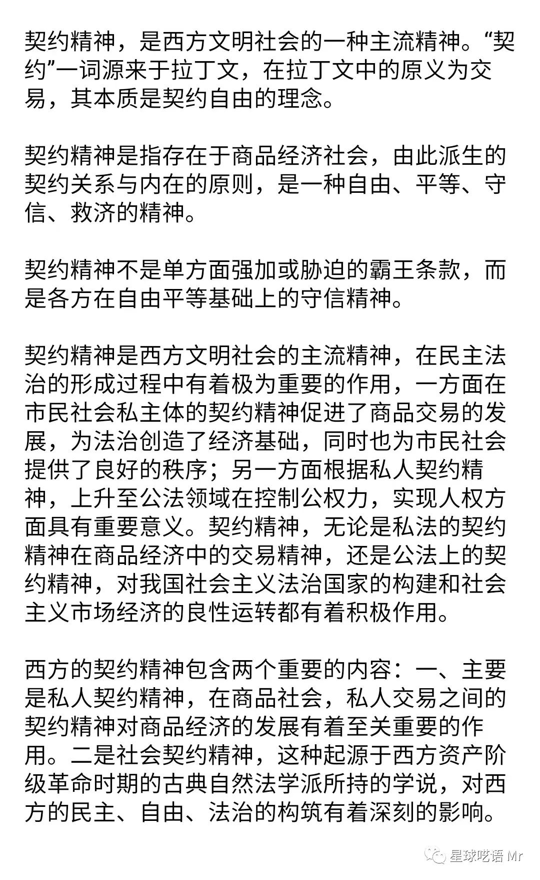 契约精神在市民社会已经从传统的私法领域发展到了公法领域,传统的私法领域的契约精神以合意为核心,面临着巨大的困境。1974年美国学者吉尔莫抛出了契约死亡的言论。日本学者内田贵以《契约的再生》来回应了这股浪潮,他认为死亡的是古典契约交易理论,契约没有死亡,而是在新的环境中得到重生。契约精神发生了一定变化。甚至出现了关系契约的说法。也就是将契约发展到社会人际关系中,横跨公法和私法的领域。
