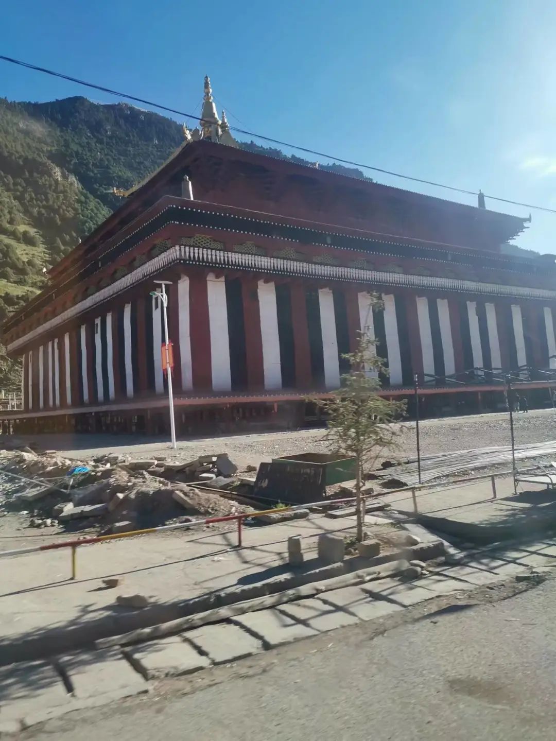 玉树藏族自治州,是我国著名的"三江源"自然保护区。又是歌舞的故乡。玉树,是2010年发生过一次地震出名的。当时房屋倒毁,道路中断,全国人民为此揪了把心。事过已12年看玉树,简直帅呆了。玉树藏族自治州虽属青海省行政管辖,但沿线农牧民的生活环境和生活方式与西藏并无二样。绿色的高原草场,满坡的牦牛饲养。山水漪丽,蓝天白云。沿途到处有崭新的彩边帐篷,花色阳伞,穿着新衣的牧民兄弟正准备在雪顿节大狂欢一把。离玉树市区还有20余公里,导航先把我们领到"文成公主庙"。本文在游览西藏拉萨大昭寺时提到过文成公主。在藏区10多天的游览中,藏区文化,藏传佛教寺院可看到,文成公主备受藏区人民爱戴。她的确为汉藏等地民族融合立下了万世功勋。在西藏的一些顶级旅游点,如大小昭寺,布达拉宫等历史文化文物,都与文成公主密不可分。远看到一座金碧辉煌且高大气派的寺院,以为是文成公主庙。近看是"禅古寺"。功课完才眀白,这么大寺院的存在,主要是为了护持文成公主庙而建。1300年了。